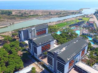 Местоположение: Хотелът се намира на 15 км. от летище Анталия, на 25 км. от центъра на Анталия, в района на Кунду - Лара, на 450 м. от брега на морето. Построен през 2016 г. Стаи: Хотелът разполага с общо 674 стаи, от които 539 стандартни и 135 семейни. Всички стаи са оборудвани с климатик, телевизия, телефон, баня с душ, сешоар, минибар, сейф, балкон, безжичен интернет. Почистване на стаите – всеки ден, смяна на спалното бельо – на всеки 2 дни от седмицата. В хотела: Основен ресторант, 5 a лa карт ресторанта (с предварителна резервация), 9 бара, 5 открити и 1 закрит басейн, 4 водни пързалки, аквапарк, мини клуб(4 - 12г.) магазини, Спа център, дискотека, TВ зала, 9 конферентни зали, билярд, боулинг, тенис корт, фитнес цетър, дартс, тенис на маса, плажен волейбол, паркинг. Хранене: Ultra All Inclusive – закуска, обяд и вечеря на шведска маса, междинни хранения, местни и някои вносни алкохолни и безалкохолни напитки без лимит. Плаж: Собствен, на 450 метра от хотела. Чадъри, шезлонги и матраци на плажа и при басейна – безплатно, плажни кърпи – срещу депозит. |