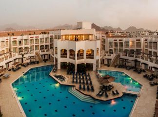 Местоположение: Намира се на 6 км от централната част на курорта Наама Бей, на 6 км от международното летище в Шарм Ел Шейх, на втора брегова линия в залива Шаркс Бей. Стаи: Хотелът разполага с 138 стаи: Standard Room Pool View (22 кв.м), 104 Superior Room Pool View (29 кв.м), Superior Family Garden View (42 кв.м, 2 отделни стаи). Всички стаи са оборудвани с климатик, телефон, телевизор, сейф (безплатно), мини бар (безплатно зареждане с вода), ютия и дъска за гладене, баня с душ/вана, сешоар, балкон или тераса, тоалетни принадлежности. Почистване на стаите - всеки ден. В хотела: Основен ресторант Barracuda,Barracuda, лоби бар Marlin, снек бар Dolphin, открит басейн (отопляем през зимата), 24-часова рецепция, паркинг, анимация и музика на живо. За децата: детски клуб (4-12 год.), детски басейн (отопляем през зимата), детска площадка. Безплатни услуги: Wi-Fi в общите части на хотела, фитнес, джакузи, целодневна анимация, тенис на маса, дартс, водна топка. Платени услуги: дайвинг център, лекар на повикване, химическо чистене и пране, индивидуален трансфер, късен чек аут, масажи, билярд, салон за красота. Хранене: All Inclusive - закуска, обяд и вечеря на шведска маса, междинни хранения, местни алкохолни и безалкохолни напитки (съгласно концепцията на хотела). Плаж: Собствен, пясъчен, осигурен шатъл до плажа на хотел JAZ Belvedere. Чадъри и шезлонги на плажа и при басейна - безплатно. Плажни кърпи - безплатно. *Хотелът има право да прави промени в концепцията си по всяко време, без да уведомява предварително туроператора. |