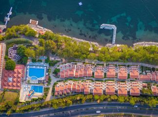 Местоположение: Хотелът се намира на 130 км. от летище Милас, на 90 км. от летище Даламан, на 5 км. от центъра на Мармарис, на 3 км. от Ичмелер, на брега на морето. Построен през 1988 г. с обща площ от 110 000 м2, последно реновиран през 2013 г. Стаи: Хотелът разполага общо с 440 стаи, от които 271 в основния блок, 159 вили и 10 апартамента. Всички стаи са оборудвани с климатик, сателитна телевизия, телефон, баня с душ или вана, сешоар, мини бар (платено), сейф (безплатен), балкон. Почистване на стаите - всеки ден, смяна на спалното бельо и кърпите - при поискване от страна на гостите. В хотела: Оновен ресторант, 4 а-ла-карт ресторанта (с предварителна резервация, алкохолните напитки се заплащат допълнително), 6 бара, дискотека, 2 открити басейна, водни пързалки, магазини, СПА център, 16 конферентни зали, паркинг. За децата: 2 детски басейна, детска площадка, мини клуб (4–12 г.), дискотека, кино. Безплатни услуги: Сауна, турска баня, фитнес, аеробика, тенис корт, тенис на маса, анимационна програма, музика на живо, интернет (на лоби). Платени услуги: Масаж, пилинг, фризьор, магазини, интернет кафе, билярд, наем на ракети и топки за тенис, тенис корт, уроци по тенис, кану, водно колело, курс по гмуркане, моторни водни спортове. Хранене: All Inclusive – закуска, обяд, вечеря и междинни хранения на шведска маса; алкохолни и безалкохолни напитки местно производство без лимит. Плаж: Собствен, платформа – чадъри и шезлонги на плажа и при басейна – безплатно, плажни кърпи - срещу депозит. Хотелът има право да прави промени в концепцията, без да уведомява предварително туроператора за наложените промени. |