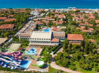 Местоположение: Хотелът се намира на13 км от град Манавгат, на 45 км от центъра на Алания, на 15 км от Сиде. Центърът на Анталия отстои на 80 км. Построен е през 1997 г. с обща площ от 98000 кв.м, реновиран е през 2015 г. Стаи: Хотелът се състои от 1 основна сграда и 15 сгради тип бунгало с османска архитектура. Посреща гостите си в 585 климатизирани стаи, които имат сателитна телевизия, телефон, минибар, сейф, баня с вана, сешоар, балкон. Почистване на стаите - всеки ден, смяна на спално бельо - на всеки два дни. Хранене: Хотелът има основен ресторант, 3 а`ла карт ресторанта и детски ресторант. В 6-те бара се поднасят разнообразни напитки. Храна и напитки: закуска, обяд и вечеря (на бюфет), следобедни закуски, безплатно турско кафе на пясък, детски бюфет, бебешки кът, кафе и торта, сладолед, нощна супа, всички местни алкохолни и безалкохолни напитки. Входът за дискотека е безплатен, а всички напитки в диско бара се заплащат. Вносните напитки, бутилирани вина и прясно изцедени плодови сокове във всички барове се заплащат. Плаж: Хотелът разполага със собствен пясъчно-чакълест плаж с кей. Има и кей с площ от 1000 кв.м. За удобство на гостите предлага 2 големи плувни басейна с 4 пързалки и 2 детски басейна. При басейните и на плажа - чадъри, шезлонги, матраци и плажни кърпи се ползват безплатно. Безплатни услуги: Чадъри, шезлонги, плажни кърпи, зарядно за телефон във фоайето, безжичен интернет в зоната на басейна, фоайето и всички други зони. Развлечения: За пълния релакс на своите гости и за активния им отдих хотелът предлага анимация през целия ден, дневни игри и спорт, различни шоу програми в амфитеатъра вечер. Сауна, турска баня, баскетбол, тенис на маса, дартс, волейбол, аеробика, мини голф, фитнес център. Срещу допълнително заплащане - масаж, център за красота, осветление на тенис корта, детегледачка, водни спортове. За децата има детски бюфет, бебешки кът, детска анимация, миниклуб (4-12 год.), детска площадка, детска площадка на плажа, легло за майки с бебета на плажа, бебешко легло, детегледачка, детски столчета в ресторанта. |