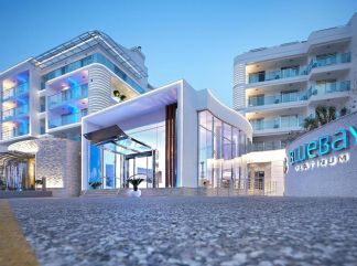 Местоположение: Хотелът се намира на 134 км. от летище Милас, на 90км от летище Даламан, на 1.9 км. от центъра на Мармарис, на 70 м. от брега на морето. Построен през 1989 г., с обща площ от 4000 m2 , последно реновиран през 2014 г. Стаи: Хотелът разполага с общо 441 стаи, разпределени в 4 блока. Всички стаи са оборудвани с климатик, телевизор, телефон, баня с вана/душ, сешоар, мини бар, сет за чай/кафе, сейф (платен), балкон. Почистване на стаите – всеки ден, смяна на спалното бельо и кърпите – 3 пъти в седмицата. В хотела: Основен ресторант, а-ла-карт ресторант (италиански и рибен - платен) ,6 бара, дискотека, 4 открити (един с 2 водни пързалки) и 1 закрит басейн, магазини, СПА център, конферентна зала, паркинг. За децата: Детски басейн, детска площадка, мини клуб (4-12 г.), мини дискотека. Безплатни услуги: Сауна, турска баня, парна баня, фитнес, анимация, WI-FI интернет в лоби. Платени услуги: Масаж, фризьор, магазини, интернет кафе, игрални автомати, мини голф. ПЛАЖ: Собствен, пясъчен – чадъри и шезлонги на плажа и при басейна – безплатно, плажни кърпи – срещу депозит. Хранене: All Inclusive – закуска, обяд, вечеря и междинни хранения на шведска маса; алкохолни и безалкохолни напитки местно производство без лимит. |