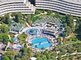 Местоположение: Хотелът се намира на 75 км от летище Измир, на 125 км от летище Милас, на 3 км от центъра на Кушадасъ, на 18 км от Ефес, на брега на морето. Построен през 1997 г., с обща площ от 40 000 м², в района на известния плаж - Лейдис бийч, последно реновиран през 2010 г. Стаи: Хотелът разполага с 319 стаи, от които 313 стандартни (35 м²) и 6 суита, разположени в три шестетажни блока. Всички стаи са оборудвани с климатик, телевизор, телефон, баня с вана, сешоар, минибар (платен), сет за чай/кафе, сейф (безплатно), балкон, Wi-Fi интернет (безплатно). Почистване на стаите и смяна на кърпите - всеки ден, смяна на спалното бельо - 2 пъти в седмицата. В хотела: Основен ресторант, 3 а-ла-карт ресторанта (рибен, отомански и италиански - с предварителна резервация, едно безплатно посещение на един от тях, в периода от 01.06-15.09), 5 бара, сладкарница, 2 открити басейна, СПА център, дискотека, магазини. За децата: Детски басейн, мини клуб (4-12 г,). Безплатни услуги: Турска баня, сауна, парна баня, фитнес, степ аеробика, пилатес, тенис корт, тенис на маса, билярд, анимация. Платени услуги: Масаж, фризьор, пералня, химическо чистене, лекар, осветление тенис корт, водни спортове, уроци по гмуркане, рент-а -кар. Хранене: Ultra All Inclusive - закуска, обяд и вечеря на шведска маса, междинни хранения, местни алкохолни и безалкохолни напитки без лимит (съгласно концепцията на хотела). Плаж: Собствен, пясъчен, удостоен със сертификат "Син флаг". Чадъри, шезлонги и матраци на плажа и при басейна – безплатно. *Хотелът има право да прави промени в концепцията си по всяко време, без да уведомява предварително туроператора. |