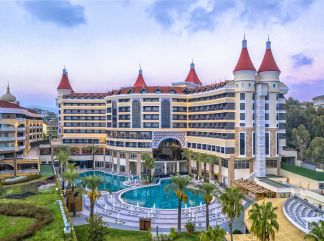 Местоположение Хотелът се намира на 90 км. от летище Анталия, на 23км. от гр.Манавгат, на 100км. от центъра на гр.Анталия, на 33км. от гр.Алания, на брега на морето. Построен през 2007 г. с обща площ от 10.000 м2, последно реновиран през 2013 г. В хотела Оновен ресторант, 3 а - ла - карт ресторанта (с предварителна резервация), 8 бара, дискотека, 1 открит и 1 закрит басейн, водни пързалки, магазини, СПА център, анфитатър. Стаи Хотелът разполага общо с 290 стаи, от които 188 стандартни стаи и 65 фамилни стаи. Всички стаи са оборудвани с: климатик, сателитна телевизия, телефон, баня с душ или вана, сешоар, мини бар, сейф (платено), балкон. Почистване на стаите - всеки ден, смяна на бельото и кърпите - 3 пъти в седмицата. Плаж собствен, пясък. Чадъри, шезлонги, матраци – безплатно. Плажни хавлии: безплатно. При басейна: чадъри, шезлонги, матраци – безплатно. За децата детско меню, детски басейн, водни пързалки, мини клуб (4–12 г.), макси клуб (12-18 г.), детска дискотека, детска площадка. Безплатни Услуги Детска дискотека, водна топка, аеробика, водна гимнастика, дартс, тенис на маса, тенис корт, волейбол, плажен волейбол, баскетбол, турска баня, мини клуб, интернет (в лоби бар). Платени Услуги Детегледачка, осветление на тенис кортовете, водни ски, търговски център, боулинг, билярд, интернет кафе, СПА център, масаж, сауна, рум сервиз. Хранене ULTRA ALL INCLUSIVE - закуска, обяд и вечеря на шведска маса, междинни хранения, алкохолни и безалкохолни напитки - без лимит (съгласно концепцията на хотела). |