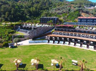 Местоположение: Хотелът се намира в Олудениз, на 65 км от летище Даламан, на 17 км от центъра на Фетие, на 700 м от плажа на Олудениз. Построен е през 2010г. с обща площ от 15000 м2. Стаи: Хотелът разполага със 99 стаи. 36 Стандартни стаи (17 m²), 21 Делукс стаи (20 m²), 7 Делукс стаи с тераса (20 m²), 22 Стаи с панорамна тераса и джакузи (17 m²), 10 Семейни стаи (32 m²) Всички стаи са оборудвани с: душ кабина, тоалетна, сейф, климатик със система за отдих, сешоар, телефон, LCD телевизор, сателитна телевизия с музикални канали, минибар, удобства за приготвяне на чай/кафе, балкон или тераса. В хотела: Основен ресторант, а-ла карт ресторант (с предварителна резервация), голяма градина, открит басейн,1 детски басейн, 4 бара (бар в градината, бар на басейна, снек бар) За децата: детски басейн, детска площадка (4-12г.) от 10:00-12:00ч. и от 14:00 до 18:00 часа. Безплатни услуги: Wi-Fi интернет (в общите части и стаите), сейф, анимация, дартс, шах, аеробика , бoча, мини футбол, волейбол, тенис на маса, водна топка, водна гимнастика, трансфер с шатъл до плажа (10-16:30ч), паркинг. Платени услуги: фризьор, лекар, пране, гладене, факс услуги, телефон, мини маркет, водни спортове, рент-а-кар. Хранене: ULTRA АLL INCLUSIVE - закуска, обяд, вечеря и междинни хранения на шведска маса; местни алкохолни и безалкохолни напитки без лимит. Плаж: Собствен, пясъчен. Хавлии, шезлонги и чадъри при басейна - безплатно. На плажа - шезлонги и чадъри - безплатно, хавлии - платено. Безплатен шатъл до плажа. Хотелът има право да прави промени в концепцията, без да уведомява предварително туроператора за наложените промени. |