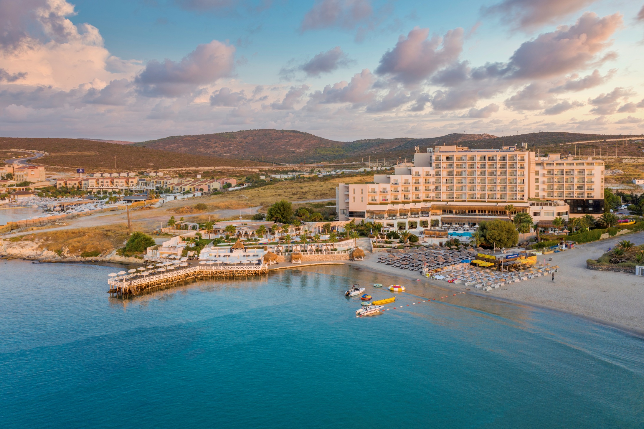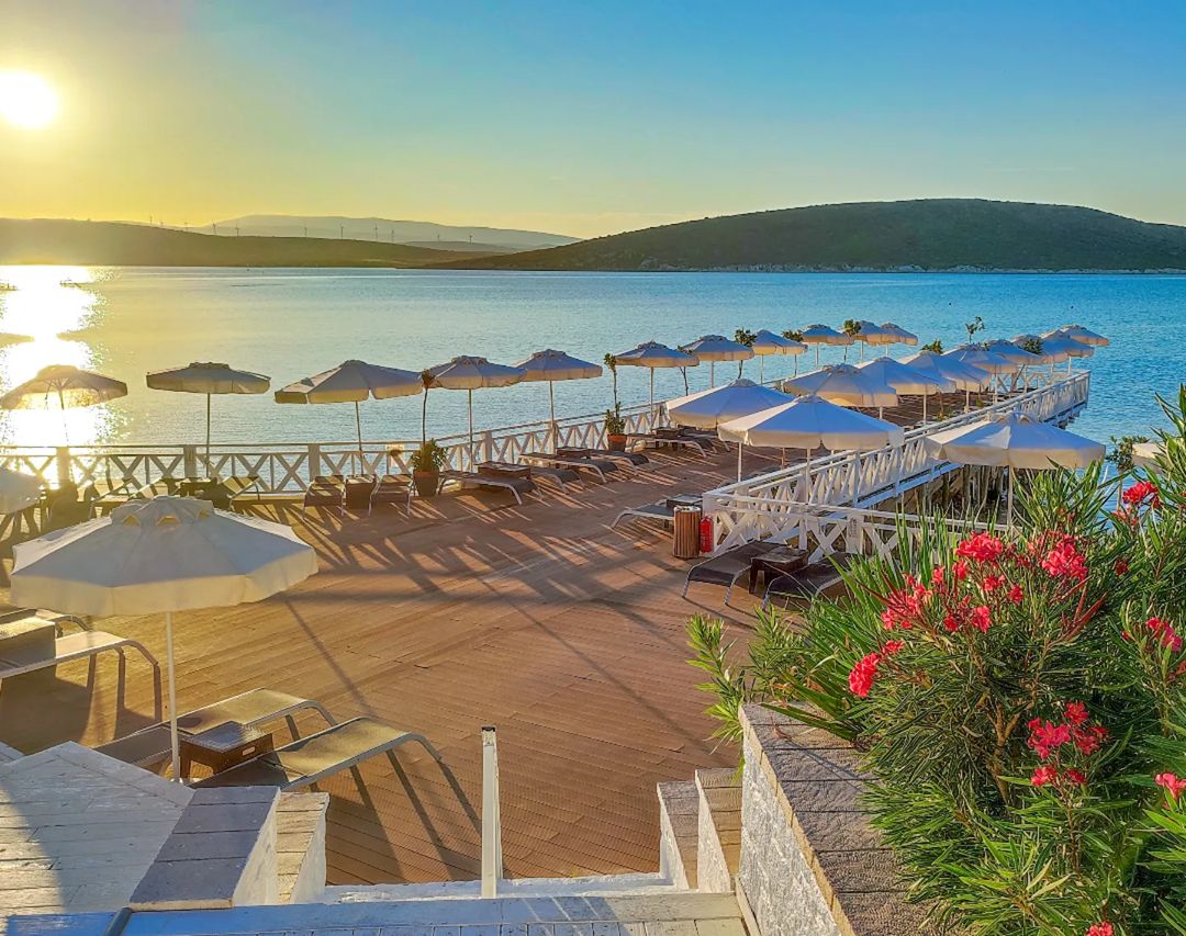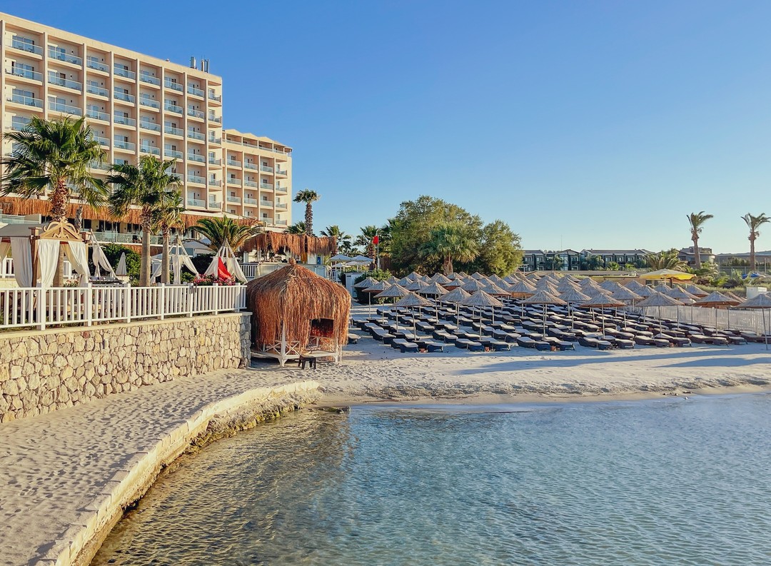Местоположение: Хотелът се намира на 89 км от летище Измир, на 12 км от Чешме, на 4 км от курорта Алачатъ, на брега на морето. Стаи: Хотелът разполага със 189 елегантно обзаведени стаи, от които супериор стаи с изглед градина (30-32 кв.м), супериор стаи с частичен изглед море (30-32 м²) и супериор с изглед море (30-32 м²), делукс стаи с изглед море (34 м²) , апартамент с изглед море (две стаи - 50-60 м²), фамилен апартамент с изглед море (три стаи - 63-65 м²), премиум суит тераса с изглед море (55 м²), 1 стая за хора с увреждания. Всички стаи са оборудвани с климатик, телевизор, телефон, баня с душ/вана, сешоар, минибар /платен/, сейф /платен/. Почистване на стаите - всеки ден, смяна на спалното бельо и кърпите – при заявка. В хотела: Основният ресторант Dynasty предлага вкусни студени и топли ястия на шведска маса, Seya Beach Lounge & Restaurant (атрактивно кулинарно изживяване край морето, срещу заплащане), сладкарница - (вкусни деликатеси в уникална атмосфера, срещу заплащане), Lobby Lounge ( срещу заплащане), Lime Bar (закуски, освежаващи напитки и иновативни коктейли до залез слънце, срещу заплащане), открит басейн, СПА център, конферентна зала, ТВ зала, амфитеатър, фризьорски салон, магазини, паркинг. За децата: Детски басейн, детски водни пързалки, детска площадка, мини клуб (4-12г). Безплатни услуги: Сауна, турска баня, фитнес център, жива музика, Wi-Fi интернет в лоби. Платени услуги: Масажи, химическо чистене, лекар, водни спортове, Хранене: ВВ - закуска All inclusive - закуска, обяд и вечеря на шведска маса, междинни хранения, местни алкохолни и безалкохолни напитки - без лимит (съгласно концепжията на хотела) Плаж: Собствен, пясъчен. Чадъри и шезлонги при басейна и плажа - безплатно. *Хотелът има право да прави промени в концепцията си по всяко време, без да уведомява предварително туроператора. |