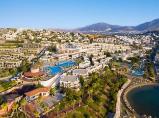 Местоположение: Намира се на 37 км от летище Бодрум, на 4 км от центъра на Бодрум, в района на Гюмбет, на брега на морето. Построен 1999 г., на обща площ от 38 000 м². Реновиран 2023 г. Стаи: Хотелът разполага с общо 508 стаи, разположени в 3-етажни къщички. Стаи Standard room land view (спалня със зона за сядане, баня, балкон, с изглед суша - 23 м²), Standard room sea view (спалня със зона за сядане, баня, балкон, с изглед море - 23 м²), Quad Standard Room (1 спалня, двуетажно легло, баня - 23 м²), Family dublex room (2 спални, 1 баня, с изглед суша - 36 м²). Всички стаи са оборудвани с климатик, телевизор, телефон, баня с душ, сешоар, сет за чай/кафе, минибар (безплатен), сейф (безплатен). Почистване на стаите и смяна на кърпите – всеки ден, смяна на спалното бельо – 3 пъти в седмицата. В хотела: Основен ресторант, 4 а-ла-карт ресторанта (рибен, турски, италиански, 24/7 - с предварителна резервация, съгласно концепцията на хотела) сладкарница, 7 бара, 4 открити и 1 закрит басейн, аквапарк, амфитеатър, СПА център, дискотека, магазини, конферентни зали, паркинг. За децата: Детско меню, 2 детски басейна, детска площадка, мини клуб (4-12г), мини диско, детска анимация. Безплатни услуги: Сауна, турска баня, фитнес, тенис корта (с твърдо покритие), дартс, шах, плажен волейбол, пилатес, водна гимнастика, водно поло, жива музика, анимация, Wi-Fi (на цялата територия). Платени услуги: Масаж, пилинг, фризьор, фотограф, лекар, детегледачка, химическо чистене, боулинг, билярд, 7D кино, осветление и оборудване за тенис корт, електронни игри, водни спортове, плажна кабана, рент-а-кар. Хранене: Ultra All Inclusive - закуска, обяд и вечеря на шведска маса, междинни хранения, алкохолни и безалкохолни напитки - без лимит (съгласно концепцията на хотела). Плаж: Собствен, пясъчен, платформа. Чадъри, шезлонги и плажни кърпи на плажа и при басейна – безплатно. Хотелът има право да прави промени в концепцията, без да уведомява предварително туроператора за наложените промени. |