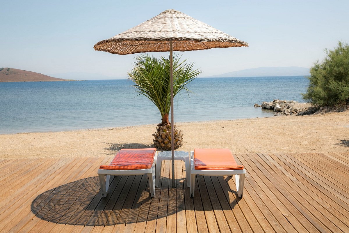 Местоположение: Хотелът се намира на 50 км от летище Милас, на 11 км от центъра на Бодрум, разположен в района на Ортакент. Стаи: Хотелът разполага с 70 Standard Room (22-24 m²). Всички стаи са оборудвани с климатик, телевизор, баня с вана или душ, безплатни тоалетни принадлежности и сешоар. Почистване на стаите всеки ден, чаршафи и кърпи се сменят 3 пъти в седмично. В хотела: Основен ресторант, бар при басейна, окрит басейн, детски басейн. Безплатни услуги: Тенис на маса, табла, волейбол, дартс, паркинг, Wi-Fi на цялата територия на хотела. Платени услуги: Осветление за тенис на корт , билиярд, рент-а-кар, доктор. Хранене: ALL INCLUSIVE - закуска, обяд, вечеря и междинни хранения на шведска маса; алкохолни и безалкохолни напитки местно производство без лимит. (съгласно концепцията на хотела). Плаж: Собствен пясъчен плаж - чадъри, шезлонги и матраци на плажа и при басейна - безплатно. Хотелът има право да прави промени в концепцията, без да уведомява предварително туроператора за наложените промени. |