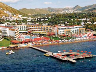 Местоположение на 55 км от летището на гр. Бодрум, на 22 км от центъра на гр. Бодрум, на 4 км от местността Тургутрейс, на брега на морето Стаи баня с вана, баня с душ (club rooms), сешоар, централен климатик, телевизор, телефон, мини бар (ежедневно се зарежда с безалкохолни напитки, безплатно), сейф (безплатно), балкон, почистване на стаите - всеки ден, смяна на спалното бельо - 2 пъти седмично Плаж Собствен, пясък. Кей. На басейна и на плажа: чадъри, шезлонги, матраци - безплатно. Плажни хавлии: безплатно (срещу депозит). Удобства основен ресторант, 3 ресторанта a la carte (рибен и италиански, с предварително записване за едноседмичен престой по 1 безплатно посещение, напитки - платено; турски - платен), 5 бара, 2 открити басейна, закрит басейн, 2 водни пързалки, лекарски кабинет, SPA център, магазини, фризьорски салон, пералня, химическо чистене, конферентна зала (300 чов.) Безплатни Услуги турска баня, сауна, парна баня, Фитнес зала, аеробика, водна гимнастика, 2 тенис корта с бетоново покритие (през деня), тенис ракети и топки под наем, дартс, тенис на маса, стрелба с лък, безмоторни водни видове спорт, анимационна програма, жива музика, дискотека, безжичен интернет (в лоби) Платени Услуги масаж, SPA център, билярд, осветление на тенис кортовете, уроци по тенис, Интернет кафе, курс по гмуркане, моторни водни видове спорт |
