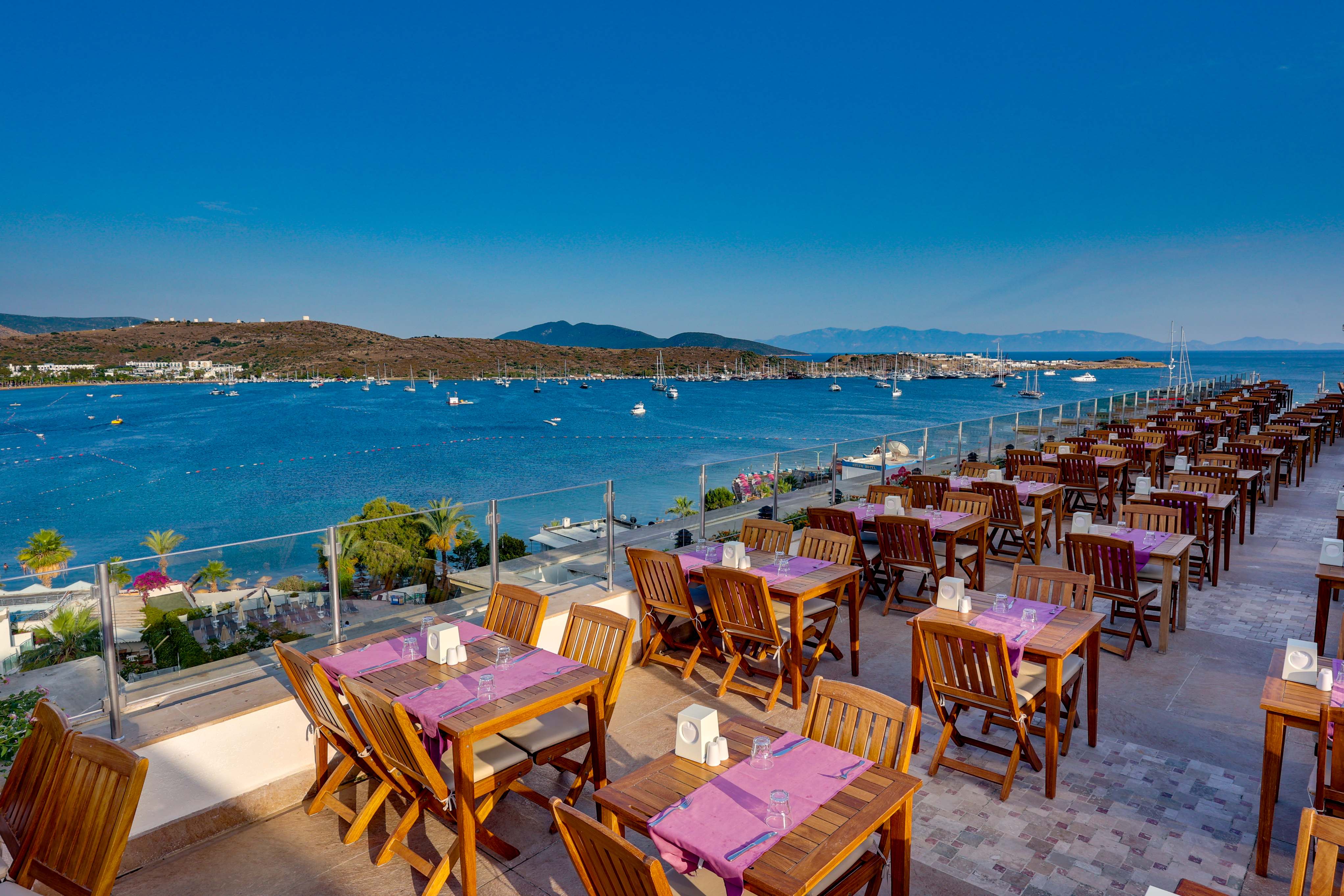 Местоположение: Намира се на 35 км от летище Бодрум, на 3 км от центъра на Бодрум, в района на Гюмбет, на брега на морето. Построен 2006 г., на обща площ от 16 000 м². Частично реновиран 2018 г. Стаи: Хотелът разполага с общо 351 стаи, от които 259 разположени в 5-етажна основна сграда Main building и 92 стаи в къщички. Стаи Standard land view room (стаи без изглед - 18-20 м²), Standard sea view room (стаи в основната сграда с изглед море - 18 - 20 м²), Relax Room (отделни къщички без гледка - 20 м² - 28 м²), Relax room sea view (отделни къщички с гледка към море - 20 м² - 28 м²), Relax Family Large Room (отделни къщички фамилни стаи - 30 м²). Всички стаи са оборудвани с климатик, телевизор, телефон, баня с душ, сешоар, минибар (безплатен при настаняване), сейф (платен). Почистване на стаите и смяна на кърпите – всеки ден, смяна на спалното бельо – 2 пъти в седмицата. В хотела: Основен ресторант, 3 а-ла-карт ресторанта (рибен, турски, италиански – с предварителна резервация, съгласно концепцията на хотела / 1 безплатно посещение на 1 от ресторантите при минимум 7 нощувки), сладкарница, 9 бара, 1 открит и 1 закрит басейн, СПА център, магазини, паркинг. За децата: Детска площадка, мини клуб (4-12г), детска анимация. Безплатни услуги: Сауна, турска баня, фитнес, дартс, анимация, Wi-Fi (в общи площи). Платени услуги: Масаж, пилинг, приключенски душ, фризьор, фотограф, лекар, детегледачка, химическо чистене, водни спортове, плажна кабана, рент-а-кар. Хранене: Ultra All Inclusive - закуска, обяд и вечеря на шведска маса, междинни хранения, алкохолни и безалкохолни напитки - без лимит (съгласно концепцията на хотела). Плаж: Собствен, пясъчно - чакълест. Чадъри, шезлонги и плажни кърпи на плажа и при басейна – безплатно. Хотелът има право да прави промени в концепцията, без да уведомява предварително туроператора за наложените промени. |
