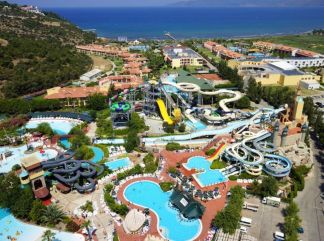 Местоположение: Намира се на 65 км от летище Измир, на 130 км от летище Милас, на 8 км от центъра на Кушадасъ, на брега на морето. Изграждането на комплекса започва през 2002 г. като в днешния си вид е завършен през 2006 г. реновиран 2022/2023. Разположен на обща площ от 85 000 м². Хотелът е удостоен със сертификат "Зелена звезда" за опазване на околната среда. Стаи: Хотелът разполага с 489 стаи: Standard Room (25 м²), Promo (25 м²), Superior Room (35 м²), Family Room (2 спални със/без свързваща врата - 35 м²), Superior Family Suite (2 спални, две бани - 55 м²) , Family Suite (2 спални, 1 баня - 41 м²) и стаи, пригодени за хора с ограничена подвижност (23 м2). Всички стаи са оборудвани с климатик, телевизор, телефон, баня с душ/вана, сешоар, сет за чай/кафе, минибар (ежедневно зареждане с безалкохолни напитки и вода-безплатно), сейф (безплатен), балкон. Почистване на стаите – всеки ден, смяна на спалното бельо и кърпите – 3 пъти в седмицата. В хотела: Основeн ресторант Oasis (за закуска и вечеря, със секция за вегетариански, безглутенови и диетични ястия), Pearl Garden Restaurant (за обяд), 5 а-ла-карт ресторанта (рибен, турски, азиатски, италиански и стек - с предварителна резервация), 7 бара, Thea’s Coffee Shop (платен), 4 открити басейна, 2 закрити басейна, аквапарк с 31 водни пързалки, мини аквапарк в закрит басейн, магазини, 2 конферентни зали, амфитеатър, СПА център, дискотека, рампи, достъпни за инвалидни колички, паркинг. На разположение на гостите на хотела е аквапарк, който разполага с 31 водни пързалки, от които няколко екстремни (Super combo,Screamer, Crazy Raft, Boomerango, Space Bowl и др.), басейн със 7 вида изкуствени вълни, 400 метра дълга Lazy River, Lily Pad - място за срещи на родители и техните деца, а за по-малките деца са налични: голяма детска зона с пиратски кораб с 6 пързалки и интерактивни играчки, комплекс от пързалки „Подводен октопод“, жабешка пързалка и разбития кораб. Основни правила за ползване на Аквапарка: Не се препоръчва за хора с физически увреждания, сърдечни оплаквания и бременни жени. Деца на възраст под 12 години трябва да бъдат придружени от възрастен. Не се допуска използването на някои от пързалките от деца с височина под 120 см. Всички деца под 3-годишна възраст се изискват да носят "swim" памперси. Консумацията на хранa и напитки на теритотията на аквапарка е срещу заплащане. За бебета: Сектор в основния ресторант за приготвяне на бебешка храна, нагревател за шишета за хранене и бебешка количка (при наличност, под наем). За децата: Детско меню, детски басейни, аквапарк, детска площадка, мини клуб Croco’s Kids Club (4-7 г.), мини клуб Croc’s Rock Club (8-12 г.), тийн клуб (13-16 г.), детско кино, мини диско, анимация. За Младоженци: Специална декорация на стаята, кошница с плодове и вино в стаята при пристигане, закуска в стаята по време на престоя (еднократно, с предварителна резервация), приоритетна резервация за едно посещение в един от а-ла-карт ресторантите (с предварителна резервация), 20% отстъпка в СПА центъра. Семейните двойки, които ще се възползват от пакета за меден месец, трябва да предоставят брачното свидетелство с дата на сключване на брака не по-рано от 30 дни преди датата на настаняване. Безплатни услуги: Сауна, турска баня, парна баня, фитнес, дартс, тенис на маса, 2 тенис корта, йога, водна гимнастика, плажен волейбол, баскетбол, футбол, мини голф, водна топка, жива музика, анимация, WI-Fi, Платени услуги: Масаж, фризьор, магазини, химическо чистене, лекар, боча, дартс, билярд, боулинг, игр