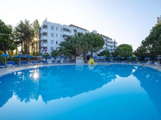 Местоположение: Хотелът се намира на 80 км от летище Измир, на 118 км. от летище Милас, на 6 км. от центъра на Кушадасъ, на 800 м. от брега на морето. Последно реновиран през 2012 г. Хотелът се намира в непосредствена близост до големи вериги магазини. Стаи: Хотелът разполага с 104 стаи, от които 49 стандартни и 55 фамилни стаи (2 стаи със свързваща врата). Всички стаи са оборудвани с климатик, телевизор, телефон, баня с душ, сешоар, минибар (празен), балкон или тераса. Почистване на стаите – всеки ден, смяна на бельото – 2 пъти в седмицата. В хотела: Oсновен ресторант, 2 бара, 2 открити басейна, 2 водни пързалки, джакузи, паркинг. За децата: Детски басейн, мини клуб, детска площадка. Безплатни услуги: Дартс, тенис на маса, тенис корт, волейбол, баскетбол, футбол, мини голф, лека анимация, Wi-Fi интернет. Платени услуги: Сейф на рецепция, интернет кафе, билярд, осветление за тенис корт, лекар, химическо чистене. Хранене: All Inclusive – закуска, обяд и вечеря на шведска маса, допълнителни хранения, местни алкохолни и безалкохолни напитки (съгласно концепцията на хотела). Плаж: Плаж – собствен, пясъчен, на 1 км. от хотела. Чадъри и шезлонги на плажа и при басейна – безплатно. Безплатен шатъл до плажа 3 пъти дневно. *Хотелът има право да прави промени в концепцията си по всяко време, без да уведомява предварително туроператора. |