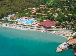 Местоположение: Намира се на 70 км от летище Измир, на 130 км от летище Милас, на 4 км от центъра на Кушадасъ, на 50 м от брега на морето. Построен през 1998 г., поетапно разширяван в периода 2004-2008 г., с обща площ 170 000 м², където тюркоазено синьото на Егейско море се слива с огромна гора от борови дървета с красиви цветя. BUNGALOW GARDEN ROOMS са реновирани през 2014 г., SUPERIOR ROOMS са реновирани през 2021 г. , FAMILY ROOMS през 2022 г. Стаи: Хотелът разполага с общо 427 стаи, от които 193 супериорни стаи с балкон (32 м²) и 96 стандартни стаи (32 м²), 102 бунгало стаи с веранда (29 м²), 24 фамилни стаи (2 спални, 1 баня - 45 м²), 4 стаи пригодени за хора с ограничена подвижност (32 м²), 4 супериор суит (45 м²), 4 бунгало суит (35 м²). Всички стаи са оборудвани с климатик, телевизор, телефон, баня с душ/вана, сешоар, минибар (безплатно зареждане с вода и безалкохолни напитки ), сет за чай/кафе, сейф (безплатен), балкон или веранда. Почистване на стаите - всеки ден, смяна на спалното бельо и кърпите - 3 пъти в седмицата. В хотела: Основен ресторант, 5 а-ла-карт ресторанта (турска, италианска, азиатска, мексиканска и морска кухня - едно безплатно посещение на един от тях при мин. 7 нощувки, с предварителна резервация, в периода от 25 май до 30 септември), 4 бара, сладкарница, 2 открити басейна, водни пързалки, магазини, СПА център, амфитеатър (25 май до 30 септември), дискотека (25 май до 30 септември), мини зоопарк, паркинг. За децата: Детско меню, детски басейн, водни пързалки, детска площадка, мини клуб (4-12 г.), детско кино, мини зоопарк, безплатен сладолед (само в определени часове), анимация. Безплатни услуги: Сауна, турска баня, фитнес, тенис на маса, тенис корт, дартс, боча, плажен волейбол, аеробика, волейбол, баскетбол, мини голф, мини футбол, стрелба с лък, анимация, Wi-Fi. Платени услуги: Масаж, фризьор, лекар, детегледачка, билярд, джаги, интернет кафе, видеоигри, химическо чистене, моторни водни спортове, осветление за тенис корт, рент-а-кар. Хранене: Ultra All Inclusive – закуска, обяд и вечеря на шведска маса, междинни хранения, местни алкохолни и безалкохолни напитки 24 часа - без лимит (съгласно концепцията на хотела). Плаж: Собствен, пясъчен, притежаващ сертификат "Син флаг" (дължина 200 м), на 50 м от хотела (преминаване през подлез на хотела).Чадъри, шезлонги, матраци и плажни кърпи на плажа и при басейна – безплатно. Бар на плажа от 09:00 до 17:30 часа (безплатни топли и студени напитки, бира). Хотелът има право да прави промени в концепцията си по всяко време, без да уведомява предварително туроператора. |