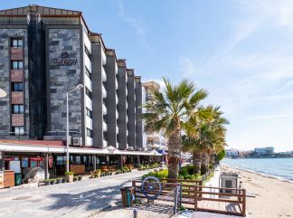 Местоположение: Хотелът се намира на 77 км от летище Измир, на 120 км. от летище Милас, на 3 км. от центъра на Кушадасъ, непосредствено разположен на известния плаж Лейдис бийч, удостоен със сертификат "Син флаг". Стаи: Хотелът разполага общо с 60 стаи (17-20 м2), по-голямата част от които са с изглед море (частичен или фронтален). Всички стаи са оборудвани с климатик, телевизор, телефон, баня с душ, сешоар, минибар, сейф (безплатно), балкон. В хотела: Основен ресторант, а-ла карт ресторант и кафене/бар (срещу заплащане), 24-часова рецепция, паркинг. Безплатни услуги: Wi-Fi, паркинг. Платени услуги: химическо чистене. Хранене: BB - закуска; HВ - закуска и вечеря. Плаж: Градски, пясъчен. Чадъри и шезлонги на плажа – безплатно. *Хотелът има право да прави промени в концепцията си по всяко време, без да уведомява предварително туроператора. |