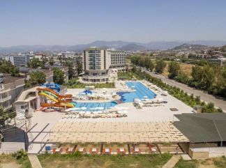 Местоположение: Според критериите на Туроператора, хотелът не покрива условията на официалната си категория 5 звезди и затова е обявен като категория 4 звезди. Хотела е построен през 2012 г. и се намира на 12 км от центъра на Алания, на 110 км от Анталия и на 100 км от летището. Стаи: Хотела има 514 стаи, които разполагат с баня, сателитна телевизия, телефон, сешоар, климатик, балкон, сейф с/у допълнително заплащане, ежедневно почистване на стаите, смяна на спалното бельо - 2 пъти седмично. В хотела: Основен ресторант, 3 Ала Карт ресторанта (турски, рибен, барбекю - с предварителбно записване, за 1 седмичен престой се полага 1 посещение - безплатно), 6 бара, 2 открити и 2 закрити басейна, 1 конферентна зала, SPA център, магазини, фризьорски салон. За децата: детски басейн, мини клуб, анимация, детска площадка. Безплатни услуги: сауна, турска баня, плажен волейбол, тенис на корт, тенис на маса, баскетбол, боулинг, безжичен интернет (на lobby). Платени услуги: масаж, игрални автомати, лекар, водни спортове. Плаж: Собствен - пясъчен. Чадъри, шезлонги и матраци на плажа и басейна - безплатно. Хранене: ALCOHOL-FREE ALL-INCLUSIVE - закуска, обяд и вечеря на шведска маса, междинни хранения, безалкохолни напитки местно производство. Алкохолни напитки не са включени. Плаж: Собствен, пясъчно-чакълест плаж. Безплатно ползване на чадъри, шезлонги, матраци на плажа и при басейните. Плажни хавлии - с депозит. Хотелът има право да прави промени в концепцията, без да уведомява предварително туроператора за наложените промени. |