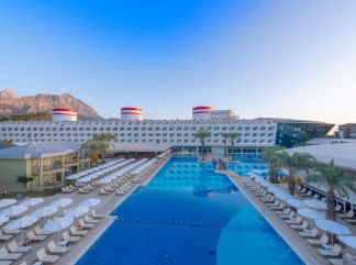 Местоположение: Намира се на 45 км. от летище Анталия, на 6 км. от Кемер, в селището Гьойнюк, на втора линия от плажа. Построен през 2007 г., с обща площ 38 000 м². Реновиран през 2017 - 2018г. Стаи: Хотелът разполага с общо 491 стаи, всички оборудвани с климатик, телевизор, телефон, баня с душ/вана, сешоар, минибар (еднократно зареждане при пристигане и всекидневно зареждане с 2 бутилки вода - безплатно), сейф (платен). Почистване на стаите - всеки ден, смяна на кърпи и спално бельо – 2 пъти в седмицата. В хотела: Основен ресторант, а-ла-карт ресторант (рибен - с предварителна резервация), 5 бара, сладкарница, открит и закрит басейн, водни пързалки, дискотека, амфитеатър, конферентни зали. За децата: Детски басейн с пързалки, анимация, мини клуб (4-12 г.), мини диско. Безплатни услуги: Сауна, турска баня, парна баня, фитнес, волейбол, анимация, паркинг. Платени услуги: Масаж, Спа център, фризьор, лекар, химическо чистене, билярд, рент -а-кар, тенис корт, тенис екипировка, осветление за тенис корт, магазини, водни спортове, WiFi интернет. Хранене: Ultra All Inclusive – закуска, обяд и вечеря с включени междинни хранения, алкохолни и безалкохолни напитки - без лимит (съгласно концепцията на хотела). Плаж: Собствен, пясъчно-чакълест плаж. Чадъри, шезлонги на плажа и при басейна - безплатни. Плажни кърпи – срещу депозит. Хотелът има право да прави промени в концепцията, без да уведомява предварително туроператора за наложените промени. |