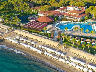 Местоположение: Хотелът е разположен на 35 км от летище Анталия и на 25 км. от град Анталия център, на брега на морето. Хотелът е построен през 1997г. на площ от 53 000 кв.м. последно реновиран 2010г. Стаи: Хотелът разполага с 507 стаи. Всички стаи са оборудвани с климатик, телевизор, телефон, мини бар(безплатен), сейф(безплатно), баня с душ, сешоар, балкон. Почистване на стаята – всеки ден, смяна на спалното бельо – 3 пъти седмично. В хотела: Основен ресторант, 5 а-ла-карт ресторанта(мексикански, с морски специалитети, далекоизточен, средиземноморски, барбекю), 5 бара, 3 открити басейна, 2 водни пързалки, фризьорски салон, магазини, пералня, химическо чистене За децата: 2 водни пързалки, детски бюфет, детска храна, детски басейн, детска площадка, мини клуб (4-12 год.). Безплатни услуги: турска баня, сауна, парна баня, фитнес салон, аеробика, водна аеробика, плажен волейбол, баскетбол, 2 тенис корта с твърдо покритие (през деня), тенис на маса, анимационна програма, музика на живо (в определени дни), дискотека, безжичен интернет(на основни зони). Платени услуги: масаж, наем на тенис ракети и топки, осветление на тенис кортовете, билярд, боулинг (2 пътеки), игрални автомати, моторни водни спортове, интернет кафе, детегледачка. Хранене: ULTIMATE ALL INCLUSIVE - закуска, обяд и вечеря на шведска маса, допълнителни хранения, алкохолни и безалкохолни напитки местно производство - без лимит. Плаж: Собствен плаж, пясъчно-чакълест. Чадъри, шезлонги и плажни кърпи на плажа и при басейна – безплатно. Хотелът има право да прави промени в концепцията, без да уведомява предварително туроператора за наложените промени. |