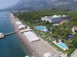 Местоположение: Намира се на 45 км от летище Анталия, на 35 км от центъра на Анталия, на 9 км от центъра на Кемер, на брега на морето. Построен 2005 г., на обща площ от 100 000 м2. Частично реновиран 2019 г. (всички стаи в основната сграда). Стаи: Хотелът разполага с общо 538 стаи, разположени в основна сграда Main building, от които 516 Comfort Standard Room (26-32 м2), 12 Family Room 2 Bedrooms (2 спални, 1 баня - 48 м2), 4 Suite Room (50 м2), 4 Disabled Room (пригодени за хора с ограничена подвижност - 30 м2). Всички стаи са оборудвани с климатик, телевизор, телефон, баня с душ, сешоар, сет за чай/кафе, минибар (безалкохолни напитки - безплатно), сейф (безплатен), балкон. В хотела: Основен ресторант, 5 а-ла-карт ресторанта (италиански, мексикански, турски, рибен, азиатски – срещу заплащане, с предварителна резервация), снек ресторант, сладкарница, 3 бара, дискотека, 3 открити и 1 закрит басейн, аквапарк с 5 водни пързалки, СПА център, магазини, 14 конферентни зали, паркинг. За децата: Открит и закрит детски басейн, детска площадка, мини клуб (4-12 г), детска анимация. Безплатни услуги: Сауна, турска баня, парна баня, фитнес, плажен волейбол, водна гимнастика, водно поло, стрелба с лък, аеробика, дартс, шах, мини голф, боча, тенис на маса, мини футбол, жива музика, анимация, Wi-Fi (в лоби). Платени услуги: Масаж, пилинг, козметични процедури, лекар, детегледачка, химическо чистене, 7 тенис корта, билярд, водни спортове. Хранене: Ultra All Inclusive - закуска, обяд и вечеря на шведска маса, междинни хранения, алкохолни и безалкохолни напитки - без лимит (съгласно концепцията на хотела). Плаж: Собствен, чакълест. Чадъри, шезлонги, матраци и плажни кърпи на плажа и при басейна – безплатно. Хотелът има право да прави промени в концепцията, без да уведомява предварително туроператора за наложените промени. |