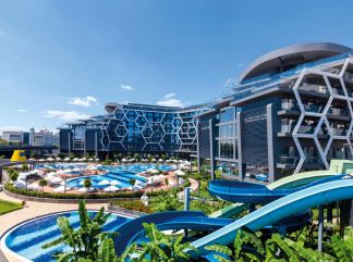 Местоположение: Хотелът е разположен на 50 км от летището в Анталия, на 3 км от г. Сиде, в селището Соргун, на 100 м от собствен плаж.Открит е през април 2017 год, обща площ 20 000 м2. Стаи: климатик, баня с вана или душ,сешоар, балкон ,мини-бар, телефон, телевизор, ел. чайник, набор за кафе/чай,сейф (безплатно), WiFi интернет (безплатно), room service (платено), смяна на спално бельо - 3 пъти седмично, почистване на стаята - ежедневно, под - ламинат. В хотела: основен ресторант, 3 a la carte ресторанта (с предварителна резервация, безплатно), 8 бара, 2 открити басейна, 1 закрит басейн (полуолимпийски), ТВ зала, лекарски кабинет, магазини, фризьорски салон, 6 конферентни зали (за 50, 200 -750 чов.), Спа център, WiFi (безплатно). Плаж:Собствен пясъчен плаж. Бар на плажа - безплатно. На плажа и при басейна: чадъри, матраци, шезлонги и плажни кърпи - безплатно. Хранене: All Inclusive – закуска, обяд, вечеря и междинни хранения на шведска маса, алкохолни и безалкохолни напитки местно производство без лимит. Плаж: Собствен пясъчно-чакълест плаж, разположен на 500 м от хотелската сграда. Хотела разполага с безплатен шатъл. Шезлонги, чадъри, матраци, плажни кърпи при плажа и басейна- безплатно. Хотела разполага с бар на плажа. Хотелът има право да прави промени в концепцията, без да уведомява предварително туроператора за наложените промени. |