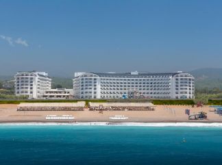 Местоположение: Според критериите на Туроператора, хотелът не покрива условията на официалната си категория 5 звезди и затова е обявен като категория 4 звезди. Хотел Calido Maris се намира в Kızılot, на 18 километра от историческия Аларахан. Стаи: Хотела разполага с 427 стаи. Всички стаи са оборудвани с: климатик, директен телефон, LCD-телевизор, балкон, мини бар, баня с душ, сешоар, сейф, балкон или тераса. Почистване на стаите - всеки ден, смяна на бельото - 3 пъти в седмицата. В хотела: Основен ресторант, 2 а - ла - карт ресторанта (турски и италиански), 2 лоби бара, бар на плажа, бар на басейна, диско бар, търговски център, доктор, тв салон, закрит басейн, открит басейн, детски басейн, 5 водни пързалки, интернет кафе, конферентна зала, фитнес център, тенис на маса, тенис,. За децата: детско меню, детски басейн, детски пързалки, детска площадка, мини-клуб (4-15 год.), детегледачка (платено). Безплатни услуги: турска баня, сауна, парна баня, фитнес, аеробика, аквааеробика, плажен волейбол, баскетбол, тенис на маса, дартс, мини-голф, боча, баскетбол, анимационна програма, безжичен интернет (в лоби). Платени услуги:сейф, масаж, джакузи, игрални зала, интернет кафе, водни спортове, СПА - център. Хранене: Ultra All inclusive - закуска, обяд и вечеря на шведска маса, допълнителни хранения, местни напитки без лимит. Плаж: Плаж: Собствен на 50м. от хотела, пясъчно - чакълест. Бар на плажа - безплатно. На басейна и на плажа: чадъри, шезлонги, матраци и плажни кърпи (срещу депозит) - безплатно. Хотелът има право да прави промени в концепцията, без да уведомява предварително туроператора за наложените промени. |