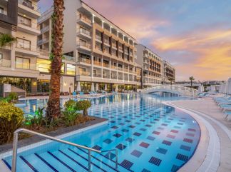 Доплащания: Новогодишна вечеря на 31.12.2025 Възрастен - 75 евро Дете от 0 до 1,99 г. - безплатно Дете от 2 до 10,99 г. - 37,50 евро Всеки хотел определя индивидуално цените, условията, начина на сервиз и забавленията на новогодишната нощ. Местоположение: Намира се 55 км. от летище Анталия, на 12 км. от центъра на античния град Сиде, на брега на моретo. Построен 2020 г., с обща площ 22.500 м². Стаи: Хотелът разполага с 272 стаи, разположени в една 8 етажна сграда. Стаи: Standart double (32,5 м²),Standart swim up (32,5 м²), Family (65 м²). Всички стаи са оборудвани с: климатик, сателитна телевизия, телефон, баня с душ/вана, сешоар, мини бар (безплатен), сет за кафе/чай, сейф, Wi-Fi, балкон. Почистване на стаите - всеки ден, смяна на бельото - 3 пъти седмично. В хотела: Основен ресторант, 4 а-ла-карт ресторанта (турски,италиански, рибен, барбекю - с предварителна резервация), 5 бара, сладкарница, 1 открит и 1 закрит басейн, СПА център, анимация, паркинг. За децата: детски басейн, детска площадка, мини диско, мини клуб, детегледачка (платено). Безплатни услуги: Сауна, турска баня, парна баня, фитнес, кино, боча, дартс, шах, аеробика, плажен волейбол, зумба, водна гимнастика, Wi-Fi. Платени услуги: Масаж, пилинг, водни спортове, фотограф, лекар, магазини. Хранене: Ultra All Inclusive – закуска, обяд и вечеря на шведска маса, междинни хранения, алкохолни и безалкохолни напитки – без лимит (съгласно концепцията на хотела). Плаж: Собствен, пясъчен. Чадъри и шезлонги на плажа и при басейна - безплатно. Плажни кърпи - безплатно. Кабани - срещу заплащане. Хотелът има право да прави промени в концепцията, без да уведомява предварително туроператора за наложените промени. |