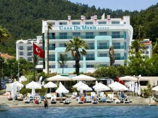 Местоположение Хотелът е разположен на 10 м. от морето, на 5 км от центъра на Мармарис, на 90 км от летище Даламан и на 120 км от летище Милас в Бодрум. В хотела Хотелът ще Ви предложи турска баня (хамам), сауна, фитнес център, Спа център, мини-клуб, център за красота, фризьор, сейф (в стаята), коли под наем, пералня, химическо чистене, лекар, А-ла-карт ресторанти, мини маркет, магазин за сувенири, обмяна на валута Стаи Стаите предлагат телефон, интернет достъп, телевизор, минибар, сейф, сешоар, душ, балкон, централна климатизация |