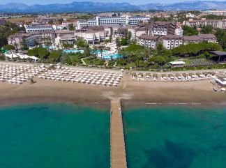 Местоположение: Намира се на 65 км. от летище Анталия, на 3 км. от Сиде, в Кумкьой, на брега на морето. Построен е през 1997 г., последно реновиран - 2019. Стаи: Хотелът разполага с общо 352 стаи - 82 Standard Balcony Sea View (24 м2), 82 Standard Balcony Land View (24 м2), 104 Standard French Balcony Sea View (30 м2), 104 Standard French Balcony Land View (30 м2), 140 Larger Standard (35м2), 24 Suite (60м2), 2 Honeymoon Suite (50м2). Всички стаи са оборудвани с климатик, телевизор, телефон, баня с душ/вана, минибар (всекидневно безплатно зареждане с вода, безалкохолни напитки и бира), сет за кафе/чай, сейф (платен). Почистване на стаите и смяна на кърпите - всеки ден, смяна на спалното бельо – 2 пъти в седмицата. В хотела: Основен ресторант, 2 а - ла - карт ресторанта (средиземноморска кухня, китайски/далекоизточен, с предварителна резервация), 5 бара, сладкарница, 3 открити и 1 закрит басейн (отопляем през зимния сезон), дискотека, конферентни зали. За децата: Детски басейн с пързалки, анимация, мини клуб (4-12 г.), тийн клуб, play station, билярд. Безплатни услуги: Сауна, турска баня, фитнес, аеробика, степ аеробика, тенис на маса, тенис корт, басктебол, плажен волейбол, водна гимнастика, дартс, боча, анимация, WiFi (в лоби), паркинг. Платени услуги: Масаж, Спа процедури, моторни и безмоторни водни спортове. Хранене: Luxury Ultra All Inclusive – закуска, обяд и вечеря, междинни хранения, алкохолни и безалкохолни напитки - без лимит (съгласно концепцията на хотела). Плаж: ПЛАЖ: Собствен, платформа, удостоен със сертификат „Син флаг”. Чадъри, шезлонги и плажни кърпи на плажа и при басейна - безплатни. Хотелът има право да прави промени в концепцията, без да уведомява предварително туроператора за наложените промени. |
