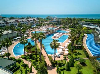 Доплащания: Не предлага новогодишна програма. Местоположение: Намира се на 65 км от летище Анталия, на 10 км от Сиде, на 1 км от село Гундуду, на брега на морето. Открит през 2014 г., с обща площ от 130 000 м2. Стаи: Хотелът разполага с общо 781 стаи разположени в основната сграда и в съседни бунгала. Всички стаи са оборудвани с: климатик, баня, сешоар, сателитна телевизия, мини бар, сейф, тераса или балкон. В хотела: Основен ресторант, 7 а - ла - карт ресторанта, 5 бара, сладкарница, 7 открити басейна, аквапарк, детски басейн, закрит басейн, Спа център и зона за релакс, фитнес и тенис курсове, колоездене, водни спортове, дискотека, безплатен Wi-Fi интернет, амфитеатър, анимация, детска площадка. Хранене: Ultra All Inclusive - закуска, обяд и вечеря, междинни хранения, алкохолни и безалкохолни напитки - без лимит (съгласно концепцията на хотела). Плаж: Плаж: Чадъри, шезлонги и плажни хавлии на басейните и на плажа - безплатни. Хотелът има право да прави промени в концепцията, без да уведомява предварително туроператора за наложените промени. |