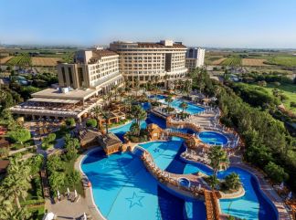 Местоположение: Намира се на 14 км от летище Анталия, на 16 км от центъра на Анталия, на брега на морето. Построен 2006 г. Частично реновиран 2024 г. Стаи: Хотелът разполага с общо 559 стаи, разположени в една основна сграда, от които 407 Deluxe Standart Rooms, 2 De Luxe Connected (две отделни спални със свързваща врата), 91 Family De Luxe (една спалня с двойно, единично легло и диван), 42 Family Elite (2 отделни спални, 2 бани), 5 Garden Family de Luxe (спалня и дневна, разположени на 2 етажа, 2 бани), 3 De luxe Suites (1 спалня, 1 дневна), 1 Elite Suite (отделна спалня и дневна, кухня, сауна, джакузи), 8 Handicapped Rooms (пригодени за хора с увреждания). Всички стаи са оборудвани с климатик, телевизор, телефон, баня с душ, сешоар, сет за чай/кафе, минибар (безплатен, само с безалкохолни напитки), сейф (безплатен), балкон/френски балкон. В хотела: Основен ресторант, 5 а-ла-карт ресторанта (турски, китайски, италиански, мексикански, рибен – срещу заплащане, с предварителна резервация), 7 бара, 3 открити и 1 закрит басейн, аквапарк с 5 пързалки, СПА център, салон за красота, кино, магазини, 6 конферентни зали, паркинг. За децата: Открит и закрит детски басейн, мини клуб (4-12 г.), детска анимация. Безплатни услуги: Сауна, турска баня, фитнес, зона за релакс, тенис на маса, тенис корт, плажен волейбол, кино, анимация, Wi-Fi (на цялата територия). Платени услуги: Масаж, СПА процедури, фризьор, лекар, детегледачка, рум сървис, химическо чистене, телефон, осветление и оборудване за тенис корт, боулинг, билярд, водни спортове, рент-а-кар. Хранене: Fame Style All Inclusive - закуска, обяд и вечеря на шведска маса, междинни хранения, местни алкохолни и безалкохолни напитки - без лимит (съгласно концепцията на хотела). Концепция Ultra All inclusive Плаж: Собствен, пясъчен. Чадъри, шезлонги, матраци и плажни кърпи на плажа и при басейна - безплатно. Хотелът има право да прави промени в концепцията, без да уведомява предварително туроператора за наложените промени. |