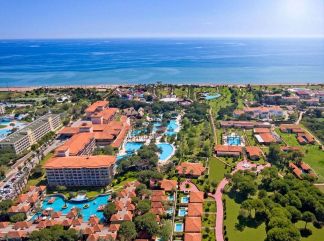 Местоположение: Намира се на 15 км от летище Анталия, на 25 км от центъра на Анталия, на 11 км от центъра на Лара, на брега на морето. Построен 2003 г., на обща площ от 93 000 м2. Частично реновиран 2022 г. Стаи: Хотелът разполага с общо 429 стаи, от които 179 Standard room (26 м2), 200 Quad Standard room (1 спалня, 2 единични легла, които се вадят от стената, 1 баня - 26 м2), 5 Handicapped room (стая за инвалиди - 26 м2), 29 Family room (2 спални, хол, 2 бани - 52 м2), 1 Kids Suite (1 спалня, етажно легло, 2 бани - 52 м2), 12 Junior Suite (1 спалня, 1 баня - 33 м2), 2 King Suite VIP Concept (2 спални, 2 бани и джакузи, хол - 131 м2), 1 Presidential Suite VIP Concept (2 спални, 2 бани и джакузи, 1 стая за детегледачка, хол с 1 работна маса, 1 маса за хранене - 213 м2) Всички стаи са оборудвани с климатик, телевизор, телефон, баня с душ/вана, сешоар, халат и чехли, сет за чай/кафе, минибар (безплатен), сейф (безплатен), балкон/тераса. Почистване на стаите и смяна на кърпите - всеки ден, смяна на спалното бельо - 2 пъти в седмицата. В хотела: Основен ресторант, 5 а-ла-карт ресторанта (италиански, мексикански, азиатски, стек, рибен - срещу заплащане, с предварителна резервация, съгласно концепцията на хотела), 2 снек ресторанта, сладкарница, 9 бара, 5 открити и 1 закрит (отопляем) басейн, аквапарк, амфитеатър, СПА център, магазини, 5 конферентни зали, паркинг. За децата: Детско меню, 3 открити и 1 закрит (отопляем през зимния период) детски басейн, детска площадка, бeйби клуб (0-4г.) мини клуб (5-12г.), тийн клуб (12-16г.), мини диско, детска анимация, детска количка (под наем). Безплатни услуги: Сауна, турска баня, 3 тенис корта (с твърдо покритие), тенис на маса, плажен волейбол, баскетбол, дискотека, аеробика, пилатес, водна гимнастика, жива музика, анимация, Wi-Fi (на цялата територия). Платени услуги: Масаж, СПА услуги, химическо чистене, лекар, фотограф, фризьор, детегледачка, боулинг, билярд, електронни игри, осветление и оборудване за тенис корт, уроци по тенис, плажна кабана, водни спортове, рент-а-кар, магазини. Хранене: High end All Inclusive - закуска, обяд и вечеря на шведска маса, междинни хранения, алкохолни и безалкохолни напитки - без лимит (съгласно концепцията на хотела). Плаж: Собствен, пясъчен. Чадъри, шезлонги, матраци и плажни кърпи на плажа и при басейна - безплатно. Хотелът има право да прави промени в концепцията, без да уведомява предварително туроператора за наложените промени. |