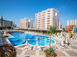 Местоположение: Намира се на 14 км от летище Анталия, на 9 км от центъра на Анталия, на 330 м от брега на морето. Построен 2013 г. на обща площ от 13 000 м2. Частично реновиран 2024 г. (общи площи). Стаи: Хотелът разполага с общо 396 стаи, разположени в четири 7-етажни сгради, от които 139 Standard room (26 м2), 139 Superior room (28 м2), 132 Family suite room (2 спални, 1 хол, 1 баня - 68 м2). Всички стаи са оборудвани с климатик, телевизор, телефон, баня с душ, сешоар, сет за чай/кафе, минибар (безплатен), сейф (безплатен). Почистване на стаите и смяна на кърпите – всеки ден, смяна на спалното бельо – 2 пъти в седмицата. В хотела: Основен ресторант, 6 а-ла-карт ресторанта (рибен, турски, италиански, азиатски, мексикански – 1 безплатно посещение на 1 от ресторантите при минимум 7 нощувки, барбекю - платен), сладкарница, 6 бара, снек ресторант, 3 открити и 1 закрит басейн, 4 водни пързалки, амфитеатър, СПА център, магазини, паркинг. За децата: Детски басейн, водни пързали, детска площадка, мини клуб (4-8г), макси клуб (8 -12 г), мини диско, детска анимация, детска количка (под наем). Безплатни услуги: Сауна, турска баня, парна баня, фитнес, тенис корт (с твърдо покритие), тенис на маса, стрелба с лък, дартс, боча, шах, плажен волейбол, баскетбол, анимация, шоу програми, Wi-Fi (в общи площи). Платени услуги: Масаж, пилинг, козметични процедури, джакузи, фризьор, фотограф, лекар, химическо чистене, осветление и оборудване за тенис корт, павилиони на плажа, водни спортове, рент-а-кар. Хранене: Ultra All Inclusive - закуска, обяд и вечеря на шведска маса, междинни хранения, алкохолни и безалкохолни напитки - без лимит (съгласно концепцията на хотела). Плаж: Собствен, пясъчен, на 330 м от хотела, платформа. Има осигурен шатъл. Чадъри, шезлонги и плажни кърпи на плажа и при басейна – безплатно. Хотелът има право да прави промени в концепцията, без да уведомява предварително туроператора за наложените промени. |
