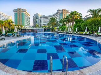 Доплащания: Новогодишна вечеря на 31.12.2025 Възрастен - 100 евро Дете от 0 до 1,99 г. - безплатно (в отделна детска зала) Дете от 2 до 11,99 г. - 100 евро Всеки хотел определя индивидуално цените, условията, начина на сервиз и забавленията на новогодишната нощ. Местоположение: Хотелът се намира на брега на морето, в района на Лара, на 12 км. от центъра и 10 км. от летището на Анталия. Построен е през 2005г. и е последно реновиран 2019-2020г. с обща площ от 33 000 кв.м. Стаи: Хотелът разполага с общо 499 стаи, като всички са оборудвани с климатик, интернет (безплатен), телевизор, телефон, сейф, мини бар (безплатен), сет за чай/кафе, баня с душ/вана, сешоар, балкон. Смяна на спалното бельо - 3 пъти седмично. В хотела: Основен ресторант, 9 бара - един от които е платен, диско бар, 4 а-ла-карта ресторанта (азиатски, италиански, рибен, турски - платени с предварителна резервация), 6 басейна, детски басейн, водни пързалки, вътрешен басейн, конферентна зала, боулинг, игрална зала, магазини, фитнес център, СПА център, амфитеатър, анимация, мини клуб (4-12г.), тийн клуб (12-16г.), WI-FI. Безплатни услуги: турска баня, сауна, фитнес, интернет, гимнастика, аквапарк, плажен волейбол, баскетбол, дартс, тенис и тенис екипировка, мин-голф. Платени услуги: телефон, СПА център, водни спортове, салон за красота, доктор, пералня, телефон, игрална зала, Хранене: Ultra All Inclusive – закуска, обяд и вечеря на шведска маса, междинни хранения, алкохолни и безалкохолни напитки – без лимит (съгласно концепцията на хотела). Плаж: Плаж: пясъчен. Шезлонги, хавлии и чадъри при басейна и плажа - безплатно. Хотелът има право да прави промени в концепцията, без да уведомява предварително туроператора за наложените промени. |