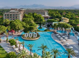 Местоположение: Намира се на 35 км от летище Анталия, на 40 км от центъра на Анталия, на 4 км от центъра на Белек, на брега на морето. Построен 2001 г., на обща площ от 130 000 м2. Реновиран 2016 г. Стаи: Хотелът разполага с общо 363 стаи, от които 302 разположени в 5-етажна основна сгради Main building, 56 стаи във вили Villas, 5 VIP Villas. Стаи Main Building: 265 стандартни стаи, от които Standard room land view (изглед суша - 28м2), Standard Room Side Sea View (изглед частично море - 28м2), 3 Handicap room (изглед суша - 30 м2), 12 Executive room (изглед суша - 38 м2), 8 Family room (2 спални, всяка с двойно и единично легло, 2 бани, изглед суша - 56 м2), 10 Connection Family room (2 спални, една стая с 1 двойно и 1 единично легло, и една стая с 2 единични легла, 2 бани - 56 м2), 4 King Suite (2 спални, една с двойно легло и една с 2 единични легла, всекидневна, 2 бани, изглед море - 128 м2). Стаи Villas: 56 Select Family Swim-Up (спалня, всекидневна, директен достъп до общ басейн, кафемашина с капсули - 31 м2), Deluxe Villa - 3 спални, 3 бани, всекидневна, кухня, тераса с градина, собствен (отопляем) басейн, изглед градина - 175 м2). VIP Villa: 1 Presidental Villa (5 спални, 5 бани, всекидневна, кухня, фитнес, билярд, тераса с градина, собствен (отопляем) басейн, джакузи, приготвяне на барбекю на всеки 7 дни, плажна кабана - безплатно, изглед градина - 403 м2). Гостите, настанени във вили King Suite, Presidental Villa получават безплатно: VIP посрещане, посещение на а-ла-карт ресторантите (с предварителна резервация), личен онлайн асистент, комплимент в стаята при пристигане, макси бар (зарежда се с напитки и снакс). Всички стаи са оборудвани с климатик, телевизор, телефон, баня с душ, сешоар, чехли и халат, меню за възглавници, сет за чай/кафе, минибар (безплатен), сейф (безплатен). Почистване на стаите и смяна на кърпите - всеки ден, смяна на спалното бельо - 2 пъти в седмицата. В хотела: Основен ресторант, 6 а-ла-карт ресторанта (турски, далекоизточен, тепаняки, рибен, италиански, мексикански - срещу заплащане с предварителна резервация), снек бар, сладкарница, станция за сандвичи, 11 бара, витамин бар, 6 открити и 2 закрити басейна, аквапарк, СПА център, дискотека, магазини, 2 конферентни зали. За децата: Детски бюфет, окрит и закрит басейн, детска площадка, бейби клуб (1-3 г.), мини клуб (4-7 г.), джуниър клуб (8-12 г.), тийн клуб (13+ г.), плейстейшън, мини кино, мини диско, лего стая, мини футбол, детска анимация, детска количка - срещу заплащане. Безплатни услуги: Сауна, турска баня, парна баня, фитнес, зона за релакс, тенис корт, тенис на маса, дартс, боча, плажен волейбол, баскетбол, мини футбол, мини голф, аеробика, канго джъмп, пилатес, водна гимнастика, водно поло, бинго, караоке, жива музика, анимация, Wi-Fi (на цялата територия). Платени услуги: Масаж, пилинг, фризьор, фотограф, детегледачка, лекар, фитнес треньор, уроци по плуване, уроци по тенис, спортен център Papillon, химическо чистене, билярд, водни спортове, плажна кабана, рент-а-кар. Хранене: Ultra All Inclusive - закуска, обяд и вечеря на шведска маса, междинни хранения, алкохолни и безалкохолни напитки - без лимит (съгласно концепцията на хотела). Плаж: Собствен, пясъчен с дължина 150 м. Чадъри, шезлонги и плажни кърпи на плажа и при басейна - безплатно. Хотелът има право да прави промени в концепцията, без да уведомява предварително туроператора за наложените промени. |