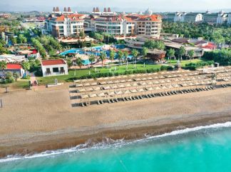 Местоположение: Намира се на 40 км от летище Анталия, на 12 км от центъра на Белек, на 1 км от центъра на Богазкент, на брега на морето. Построен 2011 г., на обща площ от 23 000 м2. Стаи: Хотелът разполага с общо 311 стаи, разположени в 5-етажна основна сграда с 4 крила, от които 215 Standard Room (27 м2), 53 Family Room (2 отделни спални, 1 баня - 45 м2), 26 Deluxe Room (разполага с джакузи на балкона - 32 м2), 12 Large Room (35 м2), 3 Handicapped Room (пригодени за хора с ограничена подвижност - 27 м2). Всички стаи са оборудвани с климатик, телевизор, телефон, баня с душ, сешоар, сет за чай/кафе, минибар (безплатен), сейф (безплатен). В хотела: Основен ресторант, 3 а-ла-карт ресторанта (турски, италиански, рибен – 1 безплатно посещение на 1 от ресторантите при минимум 7 нощувки, с предварителна резервация), 2 снек ресторанта, сладкарница, 6 бара, 2 открити и 1 закрит басейн, аквапарк с 4 водни пързалки за възрастни и 3 за деца, СПА център, 3 конферентни зали, паркинг. За децата: Детско меню, 2 открити детски басейна, 1 закрит детски басейн, детска площадка, мини клуб (4-12 г), лунапарк, мини диско, детска анимация. Безплатни услуги: Сауна, турска баня, фитнес, тенис корт (с твърдо покритие), тенис на маса, дартс, боча, шах, плажен волейбол, баскетбол, мини футбол, мини голф, аеробика, пилатес, стречинг, водна гимнастика, водно поло, жива музика, анимация, Wi-Fi (на цялата територия). Платени услуги: Масажи и СПА процедури, лекар, детегледачка, пране и химическо чистене, боулинг, билярд, осветление за тенис корт, електронни игри, водни спортове, рент-а-кар. Хранене: Ultra All Inclusive - закуска, обяд и вечеря на шведска маса, междинни хранения, алкохолни и безалкохолни напитки - без лимит (съгласно концепцията на хотела). Плаж: Собствен, пясъчно - чакълест. Чадъри, шезлонги и плажни кърпи на плажа и при басейна – безплатно. Хотелът има право да прави промени в концепцията, без да уведомява предварително туроператора за наложените промени. |