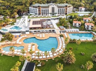 Местоположение: Хотелът се намира на брега на морето в селището Соргун. Сиде е на 3 км от хотела, а летище Анталия отстои на 65 км. Стаи: хотелът посреща гостите си в стаи, разположени в 4-етажен основен корпус Main Building и Bungalow на 2 и 3 етажа. Има 508 климатизирани стаи, които са оборудвани със сателитна телевизия, музикален канал, минибар, сет за кафе и чай, телефон, баня с душ, сешоар, сейф (безплатно), чехли, балкон. Стаите се почистват ежедневно, спалното бельо се сменя всеки ден. В хотела: Дискотека, 5 открити басейна (в единия от тях деца до 16 години не се допускат), 1 закрит басейн (с подгряване през зимата), Аквапарк (5 пързалки за възрастни + 1 пързалка за деца), Спа център, фризьорски салон, магазини, лекарски кабинет, пералня. Хранене: Хотелът разполага с основен ресторант (поднася се и диетично меню), 7 а`ла карт ресторанта (международна кухня - 24 часа, без резервация; китайски ресторант, гръцка таверна, италиански ресторант, турски ресторант - с предварителна резервация, посещение на всеки ресторант по 1 път - безплатно; стек ресторант и Teppanyaki – платено, с резервация). Има още 2 снек-ресторанта, 10 бара (един от тях работи 24 часа), сладкарница. Плаж: Хотелът разполага със собствен, пясъчно-чакълест плаж с дължина 350 м, на който има два кея (единият е 16+). За удобството на гостите си има също 5 открити басейна (единият е 16+), 1 закрит басейн. Шезлонги, чадъри, матраци, плажни кърпи на плажа и при басейните се предоставят безплатно. Развлечения: За пълния релакс на своите гости и активната им почивка хотелът предлага дневна и вечерна анимация, турска баня, сауна, парна баня, фитнес, музика на живо, дискотека, тенис на маса, плажен волейбол, тенис корт (4 корта с изкуствена трева), осветление на корт, топки и ракети под наем, аеробика, водна гимнастика, стрелба с лък, йога, безмоторни водни видове спорт, игрални автомати, боча, боулинг, стрелба с въздушна пушка, мини-голф, мини-футбол, билярд, дартс, кино. Срещу допълнително заплащане: масажи, моторни водни видове спорт, частни уроци по тенис. За децата: анимация, детска площадка, детски ресторант, детски басейн, детски пързалки, лунапарк, мини-клуб (4-12 г.), джуниър-клуб (13-16г.). Аквапарк с 5 пързалки за възрастни + 1 пързалка за деца. |