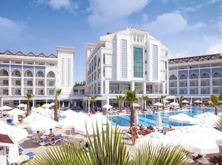 WEBSITE на хотела. Разположение: Хотелът се намира в района на Чолаклъ на 10 км. от Сиде, на 55км от летоще Анталия, на 300 м. от плажа. Окрит е през 2014 г. На територията на хотела: Основен ресторант, 2 а-ла-карт ресторанта (едно безплатно посещение при престой 7 нощувки - с предварителна резервация), снек ресторант, сладкарница, бар и нощен клуб, голям открит басейн, закрит отопляем басейн (само през зимен сезон), 3 водни пързалки, СПА център, търговски обекти, конферентна зала, безжичен интернет, паркинг. Дрес код за всички ресторанти. Безплатни услуги: Wi-Fi, фитнес (40 м2), воден фитнес, аеробика, анимация, водни пързалки, тенис на маса, билярд, дартс, вътрешни басейни, сауна, турска баня, парна баня. Платени услуги: телефон, халат, водни спортове, джаги, билярд, джакузи, масажи и СПА процедури, пране, рент-а-кар, магазини, лекар, вносен алкохол във всички барове, фреш. В стаите: Хотела разполага общо с 177 стаи, разположени в основна сграда с три 5-етажни блока. Всички стаи са оборудвани с климатик, телевизор, телефон, минибар, сет за кафе/чай, сейф, баня с душ, сешоар, балкон. Почистване на стаите - всеки ден. Standard room: 28 м2 разполага със спалня с двойно легло или две единични легла, баня с душ, балкон. Family room: 40 м2 две отделни стаи разделени с преходна врата, 1-ва спалня с двойно легло, 2-ра спалня с две единични легла, баня с душ, балкон. Изхранване: ULTRA ALL INCLUSIVE - закуска, обяд и вечеря на шведска маса, допълнителни хранения, местни алкохолни и безалкохолни напитки без лимит (според концепцията на хотела). Плаж: Собствена пясъчна плажна ивица, на около 300 м. от хотела. Чадъри, шезлонги и плажни кърпи на плажа и при басейна - безплатно.