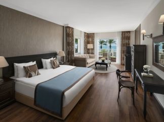 WEBSITE на хотела. Разположение: Хотелът е разположен на 35 км от летището, на 40 км от центъра на гр. Анталия, на 4 км от Белек, на брега на морето. Открит е през 2001 г., върху територия с обща площ 60 000 м2, последно реновиран през 2014 г. На територията на хотела: Основен ресторант (има диетична храна), 5 ресторанта a la carte (италиански, рибен, турски, мексикански, далекоизточен - с предварително записване, при престой от 7 нощувки – едно посещението е безплатно), 5 бара, дискотека, сладкарница, 5 открити и 1 закрит басейн (работи само през зимния сезон), 5 водни пързалки, Спа център, фризьорски салон, лекарски кабинет, химическо чистене, конферентни зали. Безплатни услуги: турска баня, сауна, парна баня, фитнес, анимация, дискотека, музика на живо, аеробика, водна гимнастика, плажен волейбол, баскетбол, футболно игрище, тенис на маса, бадмингтон, дартс, боча, пилатен, йога, безмоторни водни видове спорт, стрелба с въздушна пушка, тенис корт, тенис ракети и топки под наем, осветление на тенис корта, лаундж (Z Lounge - при ранно настаняване и късно освобождаване), WI-FI. Платени услуги: масажи, моторни видове спорт, игрални автомати, катамаран, билярд. Изхранване: High Class All Inclusive - закуска, обяд и вечеря на блок маса, допълнителни закуски и неограничена консумация на местни алкохолни и безалкохолни напитки, както и някои вносни напитки. Плаж: Собсвена пясъчна ивица с дължина 150 м. Безплатно използване на чадъри, шезлонги, матраци и хавлии на плажа и при басейните. Бар на плажа - безплатно, пирс. В стаите: Състои се от един 5-етажен корпус, и 2-етажни вили. Разполага с общо 363 стаи, които са оборудвани с климатик - централен (Main Building); индивидуален (Villas); LCD телевизор, телефон, чехли, баня с душ, сешоар, мини-бар безплатно (ежедневно зареждане с безалкохолни напитки и бира), сейф (безплатно), сет за кафе и чай, балкон/тераса, WI-FI (безплатно), под - ламинат. Почистване на стаите - ежедневно, смяна на спално бельо - 3 пъти седмично. Handicap Room