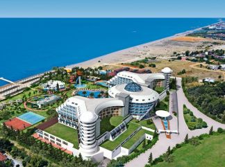 Местоположение Хотелът е разположен на брега на морето , като летище Анталия е на 80 километра от хотелския комплекс. Центърът на Анталия е на 90 километра. Отваря през април 2013 Стаи Общо 500 броя/икономични,стандартни,фамилни/.Стандартните стаи,настаняване 2+1, са с големина от 28 кв.м.Фамилните стаи,настаняване 2+2, са с големина от 48 кв.м. Елегантно обзаведени, стаите на Sea Planet Resort са с модерен интериор в светли цветове. Всяка стая има баня с вана,телевизор с плосък екран, директен телефон,музикални канали ,минибар,интернет/платен/сейф /платен/,противопожарна аларма,и балкон.Подово покритие-ламинат. Всички стаи са с изглед към морето, басейна или градината.Ежедневно почистване на стаите и смяна на хавлии,смяна на спално бельо 3 пъти в седмицата. Плаж Собствен пясъчен плаж с безплатни шезлонги и матраци на 50 метра от хотела.Кей на плажа.На плажа-тента. На Басейните-безплатни чадъри,шезлонги,матраци. Плажни кърпи срещу депозит. За децата Детско меню в основния ресторант,бебешки храни в основния ресторант,мини клуб/4-12г./детска анимационна програма. Платени Услуги Кану,водни колелета,водни моторни спортове,детегледачка,масажи и процедури в СПА –Центъра,обмяна на валута,пране,рент-а-карт,медицински услуги /извън медицинската застраховка/,магазини,фрешове,напитки в дискотеката,всички вносни алкохолни напитки по баровете. |
