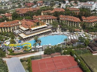 Местоположение Хотелът се намира на 8 км от град Сиде, в района на Чолаклъ, на морския бряг с обща площ 110 000 кв.м. Състои се от десет 4-етажни сгради (асансьори има в 9 сгради). Гостите на хотела използват само собствената си територия. ЛЯТО 2021 КОНЦЕПЦИЯ. Стаи Standard rooms- Land view, Sea Side, Sea view: 26 кв.м Балкон, Сейф- платено, климатик, телевизор, минибар, сешуар, вана, телефон- платено. Безжичен интернет – платен (3 евро на ден, 15 евро на седмица, сейф- 1 евро на ден Подово покритие - килим Помещения в стаята - 1 Спалня Легла - 1 двойно или 2 единични, Допълнително легло - сгъваемо или диван Пълнене на минибар – вода и безалкохолни напитки (допълва се ежедневно) Аксесоари за баня - Сапун, шампоан, душ гел Почистване на стаи - ежедневно Смяна на спално бельо - 3 пъти седмично Family room – 41 кв. м Балкон, Сейф- платено, централен климатик, телевизор, минибар, сешуар, вана, телефон. Безжичен интернет – платен (3 евро на ден, 15 евро на седмица, сейф- 1 евро на ден Подово покритие - Килим Помещения в стаята - 2 Спални с междинна врата. Легла - 1 двойно или 2 единични Пълнене на минибар – вода и безалкохолни напитки (допълва се ежедневно) Аксесоари за баня - Сапун, шампоан, душ гел Почистване на стаи - всеки ден Смяна на спално бельо - 3 пъти седмично Family bunkbed – 26 кв.м Балкон, Сейф- платено, централен климатик, телевизор, минибар, сешуар, вана, телефон. Безжичен интернет – платен (3 евро на ден, 15 евро на седмица, сейф- 1 евро на ден Подово покритие - Килим Помещения в стаята – 1 Спалня. Легла - 1 двойно или 2 единични и двуетажно легло. Пълнене на минибар – вода и безалкохолни напитки (допълва се ежедневно) Аксесоари за баня - Сапун, шампоан, душ гел Почистване на стаи - всеки ден Смяна на спално бельо - 3 пъти седмично Плаж Собствен пясъчен плаж. Чадъри, щезлонги, матраци и хавлии- безплатно. За децата Бебешко легло, Детски столчета в ресторанта, Игрище, Мини-клуб, Басейн, Наем на бебешки колички, Бавачка Коментари: Мини-клуб за деца на възраст 4-12 г., работно време 10:00-12:00/14:30-17:00ч., 2 открити детски басейна, Услуги за гледане на дете при поискване. СПА СПА център, Хамам, Джакузи, Сауна, Масаж - платено СпортБаскетбол, Билярд- платено, Мини футбол, Мини голф, Тенис, Тенис на маса, Плажен волейбол, Волейбол, Водни спортове- платено Коментари: 2 тенис корта с твърда настилка: осветление 10 евро / час, наем на ракета и топка 3 евро / час. Развлечения Дискотека, Вечерни програми, Дневни забавления. Коментари: В екипа за анимация има 6 души, има рускоговорящи. |
