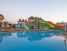 Местоположение Хотелът се намира на 100 км. от летище Анталия, на 110 км. от центъра на Анталия, в района на Алания, на 50 м. от морския бряг. Построен през 2006 г. В хотела Хотелът предлага на своите гости - Основен ресторант, 2 а-ла-карт ресторанта (с предварителна резервация), 8 бара, дискотека, 5 открити и 2 закрити басейна, водни пързалки, аквапарк, магазини, SPA център, конферентна зала, паркинг. Стаи Всички стаи са оборудвани с климатик, сателитна телевизия, телефон, баня с душ или вана, сешоар, мини бар (безплатен), сейф (платен), балкон. Почистване на стаите – всеки ден, смяна на бельото и кърпите – 3 пъти в седмицата. Плаж Собствен, пясъчно-чакълест. Чадъри, шезлонги и матраци на плажа и при басейна – безплатно.Плажни кърпи – безплатно. Безплатни Услуги Турска баня, сауна, фитнес, дартс, тенис на маса, баскетбол, плажен волейбол, аеробика, анимация. Платени Услуги Масаж, фризьор, магазини, билярд, химическо чистене, лекар, тенис корт, водни спортове. |