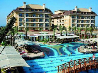 Местоположение Хотелът се намира на 40 км. от летище Анталлия, на 19 км от селището Серик, на 50 км. от Анталия на брега на морето. Построен през 2007 г. с обща площ от 23000м2. В хотела Основен ресторант, 3 a - лa - карт ресторанта ( турски, италиански, мексикански — с предварителна резервация, 1 безплатно посещение на един от ресторантите по време на престоя), 5 бара, 2 открити басейна, закрит басейн, 3 водни пързалки (за възрастни), Spa & Wellness център За децата: детски басейн, водни пързалки, мини клуб за деца ( 4-12г.), младежки клуб( 14-16г.), детегледачка ( платено ), детско меню в ресторантите, детско столче за хранене, детска площадка, развлекателни програми. Стаи Хотелът разполага с 372 стаи. Всички стаи са оборудвани с: централен климатик, телевизор, мини-бар (безплатно), сейф (безплатно), баня с вана, сешоар, телефон, балкон. Почистване на стаите – всеки ден. Услуги Хранене: ULTRA ALL INCLUSIVE - Закуска, обяд и вечеря на шведска маса, допълнителни хранения и напитки през деня, местни безалкохолни и алкохоли напитки и някои вносни безплатно. Плаж собствен, пясъчен плаж. Чадъри, шезлонги и кърпи за плаж – безплатно. Безплатни Услуги сауна, турска баня, джакузи, фитнес център, тенис кортове, тенис на маса, баскетбол, плажен волейбол, мини - футбол, аеробика, сърф, канута, дартс, дискотека, кинозала, дневни и вечерни развлекателни програми. Платени Услуги масаж, интернет кафе, фризьор, футболно игрище с осветление, осветлението на тенис кортовете вечер, топки и ракети за тенис, уроци по тенис, боулинг, билярд, голф, конна езда, водни ски, парашути, джетове. |