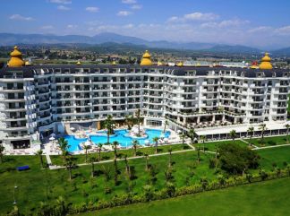 Местоположение: Хотелът е разположен на 90 км. от летище Анталия, на 15 км. от Сиде и 10 км. от центъра на Манавгат, на брега на морето.Построен през 2014г., с обща площ 10 000 м2, реновиран през 2019 г. Хотелът не приема домашни любимци. Стаи: Състои се от една 5-етажна сграда с 263 стаи. Всички оборудвани с ламинат, климатик, телевизор, телефон, баня с душ/вана, сешоар, минибар, сет за приготвяне на чай/кафе, сейф(безплатен), балкон. Всеки ден почиставане на стаите. В хотела: Основен ресторант, а ла карт ресторант ( турски, италиански, азиатски, морски - 1 безплатно посещение при 7 нощ), външен басейн, вътрешен басейн, лоби бар, ирландски пъб, диско, бар до басейна и плажа, СПА център: фитнес, турска баня, сауна; плажен волейбол, тенис на маса, дарц, боча, аеробика,гимнастика, водна гимнастика, интернет в лоби и на територията на хотела, 2 конферентни зали. Срещу заплащане: масажи, разкрасителни процедури, ВИП СПА, фризьор, коли под наем, уроци по плуване, пилатес, водни спортове, лекар, химическо чистене. Хранене: ULTRA ALL INCLUSIVE - закуска, обяд и вечеря на шведска маса, междинни хранения, алкохолни и безалкохолни напитки - без лимит (съгласно концепцията на хотела). Хотелът има право да прави промени в концепцията, без да уведомява предварително туроператора за наложените промени. Плаж: Плаж: пясъчно-чакълест на 250 м. - чадъри, шезлонги и кърпи-безплатно. |