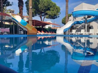 Местоположение: Хотелът се намира на 90 км от летище Измир, на 17 км от центъра от Кушадасъ. Построен през 2012 г. на обща площ 5000 м2. Стаи: Хотелът разполага с 86 стаи, от които 30 стандартни стаи (14 м2), 36 стаи с изглед към басейна (14 м2), 20 фамилни стаи (32 м2) - разполагат с балкон, настаняване до 5 души. Всички стаи са оборудвани с климатик, телевизор, баня с душ и балкон. В хотела: Основен ресторант, 2 бара, 2 открити басейна (единият от тях е само за жени), конферентна зала. За децата: 2 водни пързалки, детска площадка. Безплатни услуги: гимнастика, водна топка, дартс, степ-аеробика, Wi-Fi в лоби. Платени услуги: магазини, лекар. Хранене: Soft All Inclusive - закуска, обяд и вечеря. На територията на хотела не се сервира алкохол. |