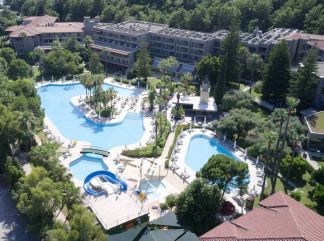 Местоположение: Хотелът се намира на 63 км от летище Анталия, на 2 км от центъра на Сиде, на брега на морето. Стаи: Хотелът се състои от Състои се от 1 основна сграда и четири допълнителни сгради (3-4-5 етажа), в които са разпределени 378 климатизирани стаи: 175 Superior Land View (изглед - суша, 32 кв.м), 15 Superior Side Sea View (частичен изглед море - 32 кв.м), 15 Superior Room with Jacuzzi on Balcony (джакузи на балкона - 32 кв.м), 3 Handicapped Room ( стая за инвалиди - 32 кв.м), 50 Deluxe Room Garden View (изглед - градина, 4 от които са подходящи за настаняване на домашни любимци - 34 кв.м), 26 Deluxe Room Side Sea View (частичен изглед море - 34 кв.м), 14 Deluxe Room With Jacuzzi On Balcony (джакузи на балкона - 34 кв.м), 22 Deluxe Room Swim Up (с директен достъп до общ басейн - 34 кв.м), 43 Family room (2 спални, 1 баня - 41 кв.м), 6 One-Bedroom Residence (1 спалня, хол, 1 баня - 54 кв.м), 3 Two-Bedroom Residence (2 спални, хол, 1 баня - 72 кв.м). Всички стаи са оборудвани с телевизор, телефон, сет за чай/кафе, еспресо машина, минибар (безплатен), сейф (безплатен), 4 таблета (ежедневно - безплатно), ютия и дъска за гладене (за целия престой - при поискване), баня с душ, сешоар, чехли, балкон или тераса, WI-FI (безплатно). Почистване на стаите - всеки ден, смяна на бельото и кърпите - 3 пъти в седмицата. Хранене: На разположение на гостите са основен ресторант и 4 а`ла карт ресторанта: Akdeniz - между народна кухня, Sofra - турска кухня, Sandal - рибен ресторант, Olive - италиански ресторант и суши ресторант. Освежаващи напитки и закуски се поднасят в 4 бара - лоби бар, бар на плажа, бар при басейна, Olive Bar. Плаж: Хотелът разполага със собствен пясъчен плаж, дълъг 80 м. На разположение на гостите са основен басейн 1000 кв.м, тих басейн (+16) 360 кв.м, релакс басейн 250 кв.м (отопляем), детски басейн 26 кв.м (отопляем), закрит басейн 110 кв.м (отопляем), Swim Up (1) 295 кв.м (отопляем), Swim Up (2) 130 кв.м (отопляем). Основният басейн има две пързалки. Външните отопляеми басейни се отопляват от 01.11 до 30.04. Вътрешният отопляем басейн се отоплява от ноември до март. Периодът и работното време на басейните се определят от администрацията на хотела в зависимост от метеорологичните условия. Чадъри и шезлонги на плажа и при басейна се ползват безплатно. Развлечения: За пълноценния релакс на своите гости и за активния им отдих хотелът предлага сауна, турска баня, фитнес, тенис корт (с осветление), тенис на маса, плажен волейбол, билярд, конзола Playstation 4, мини футбол, аеробика, водна гимнастика, анимация, Wi-Fi (в общи площи). С доплащане: масаж, пилинг, СПА център, козметични услуги, фризьор, фотограф, лекар, детегледачка, химическо чистене, игрална зала, водни спортове, концепция за домашни любимци, павилиони, рент-а-кар. За децата има детско меню, детски басейн, детска площадка, бебешка концепция (кошарка, бебефон, лигавник, нагревател за шише, столче за хранене, гърне, корито, бебешки комплект за баня), бейби клуб (0-3 год.), мини клуб (4-12 год.), тийн клуб, мини диско, детска анимация, детска количка (с депозит). |