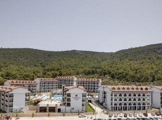Местоположение: Хотелът се намира в подножието на зелен хълм на 20 км от центъра на Дидим. Центърът на курортното селище Акбюк е на по-малко от километър. Стаи: Ramada Resort Akbuk посреща гостите си в 369 климатизирани стаи, разположени в осем триетажни сгради. Всички стаи са оборудвани с телевизор, минибар, кана за кафе и чай, баня с душ, сешоар, балкон/тераса. Стаите се почистват всеки ден, спалното бельо се сменя три пъти седмично. В хотела: Ramada Resort Akbuk предлага възможности за отдих и забавления на 2 открити плувни басейна за възрастни, 1 детски басейн с водна пързалка, СПА център (сауна, турска баня), фитнес център, мини клуб. Хранене: Ramada Resort Akbuk разполага с 1 основен ресторант с вътрешна и външна секция, 2 а'ла карт ресторанта, в които се поднася традиционна турска кухня и рибен. На територията на хотела има 5 бара - на лоби, на басейна, снек бар на плажа, витаминен бар, диско бар. Плаж: Ramada Resort Akbuk се намира на 800 м от собствен пясъчен плаж. Транспорт до плажа и обратно се осигурява безплатно целодневно. За удобство на гостите има 2 открити плувни басейна за възрастни, 1 детски басейн с водна пързалка. Чадъри и шезлонги при басейна и на плажа се предоставят безплатно. Безплатни услуги: Wi-Fi интернет е наличен на територията на целия хотел безплатно. Хотелът разполага с безплатен частен паркинг. Развлечения: Богата анимационна развлекателна програма с жива музика и вечерни представления. Фитнес център, СПА център. За децата има детско меню, детска площадка, мини клуб (4-12 год.), детски басейн, мини дискотека, детски шоу програми. Спорт: Предлага възможност за практикуване на водни спортове, плажен волейбол, тенис на корт, тенис на маса, дартс. |