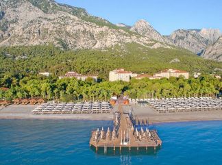 Местоположение: Намира се на 41 км. от летище Анталия, на 20 км. от центъра на Анталия, на 13 км. от центъра на Кемер, в района Белдиби, на брега на морето. Построен през 2005 г, с обща площ 90 000 м2. Частично реновиран през 2018 г. Стаи: Хотелът разполага с 500 стаи. Всички стаи са оборудвани с: централен климатик, сателитна телевизия, телефон, сейф (безплатно), мини - бар (безплатно), баня с вана, сешоар, балкон. Почистване на стаите - всеки ден, смяна на спалното бельо - 3 пъти в седмицата. В хотела: Основен ресторант, 2 открити басейна, закрит басейн, водна пързалка, анимация, тенис на маса, кинотеатър, жива музика, дискотека, обмен на валута, магазини, конферентна зала, паркинг За децата: детско меню, водна пързалка, анимация Безплатни услуги: турска баня, сауна, джакузи, фитнес център, тенис на корт, дартс, мини - футбол, плажен волейбол, баскетбол, тенис на маса, уиндсърфинг (с лиценз), катамаран, стрелба с лък, безжичен интернет в лобито на хотела, интернет кафе. Платени услуги: масаж, осветление на тенис кортовете, уроци по тенис, банан, водни ски, водни колела, билярд, химическо чистене, фризьорски салон, детегледачка, коли под наем. Хранене: Ultra All Inclusive - закуска , късна закуска, обяд и вечеря на шведска маса, някои вносни алкохолни напитки, сладолед, безалкохолни напитки, алкохолни напитки – местно производство, чай и кафе – безплатно. Фрешове и някои вносни алкохолни напитки - платени. Плаж: Плаж: Собствен. Чадъри, шезлонги и матраци на плажа и басейните - безплатни. Хотелът има право да прави промени в концепцията, без да уведомява предварително туроператора за наложените промени. |