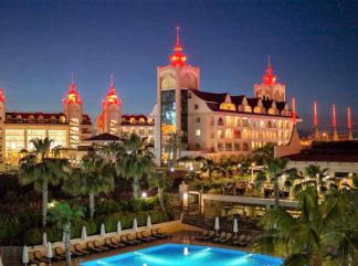 Местоположение Хотелът се намира на 7 км от град Сиде, на 50 км от летище Анталия и на 70 км от центъра на Анталия. Предишното име на хотел Side Crown Charm Palace. В хотела Амфитеатър Лекар (срещу заплащане) Фризьорски салон (срещу заплащане) Пералня (срещу заплащане) Салон за красота (срещу заплащане) Магазини Паркинг (безплатно) Коли под наем (срещу заплащане) Wi-Fi (безплатно) Хотелът приема кредитни карти: Master Card, Visa 4 външни басейна (без отопление). 1 вътрешен басейн 60 кв.м. (с отопление). 4 водни пързалки (без отопление). Стаи Standard Room Garden View - Площ 28 м2 Балкон Централен климатик Сейф (безплатно) Телевизор Wi-Fi (безплатно) Телефон (срещу заплащане) Сешоар (безплатно) Мини-бар (безплатно) Душ Халат и чехли (безплатно) Рум сервиз (срещу заплащане) hotel.rooms.чайник Разположение на помещенията: във всички сгради Гледка от стаята: градина Подово покритие: ламинат, Помещения в стаята: Спалня Легла: 1 двойно Допълнително легло: Диван Зареждане на мини-бара: безалкохолни напитки, бира, вода. Актуализира се ежедневно. Почистване на стаите: ежедневно Смяна на спално бельо: на всеки три дни Economy Room- Площ 24 м2 Балкон Централен климатик Сейф (безплатно) Телевизор Wi-Fi (безплатно) Телефон (срещу заплащане) Сешоар (безплатно) Мини-бар (безплатно) Душ Халат и чехли (безплатно) Рум сервиз (срещу заплащане) hotel.rooms.чайник Гледка от стаята: градина Подово покритие: ламинат, теракот Помещения в стаята: Спалня Легла: 1 двойно Допълнително легло: Диван, Походно легло Зареждане на мини-бара: безалкохолни напитки, бира, вода. Актуализира се ежедневно. Почистване на стаите: ежедневно Смяна на спално бельо: на всеки три дни Standard Room Pool View - Площ 28 м2 Балкон Централен климатик Сейф (безплатно) Телевизор Wi-Fi (безплатно) Телефон (срещу заплащане) Сешоар (безплатно) Мини-бар (безплатно) Душ Халат и чехли (безплатно) Рум сервиз (срещу заплащане) hotel.rooms.чайник Изглед от стаята: басейн Подово покритие: теракота, ламинат Помещения в стаята: Спалня Легла: 1 двойно Допълнително легло: Диван, Походно легло Зареждане на мини-бара: безалкохолни напитки, бира, вода. Актуализира се ежедневно. Почистване на стаите: ежедневно Смяна на спално бельо: на всеки три дни Family Garden View - Площ 44 м2 Балкон Централен климатик Вътрешна врата Сейф (безплатно) Телевизор Wi-Fi (безплатно) Телефон (срещу заплащане) Сешоар (безплатно) Мини-бар (безплатно) Душ hotel.rooms.халат (безплатно) Рум сервиз (срещу заплащане) hotel.rooms.чайник Гледка от стаята: градина Подово покритие: ламинат, теракот Помещения в стаята: 2 спални Легла: 1 двойно, 2 единични Зареждане на мини-бара: безалкохолни напитки, бира, вода. Актуализира се ежедневно. Почистване на стаите: ежедневно Смяна на спално бельо: на всеки три дни 1 баня. Плаж Автобус до плажа (безплатно) Хавлии (безплатно) Шезлонги (безплатно) Матраци (безплатно) Чадъри (безплатно) Плажна зона: собствен пясъчен плаж (400 м от хотела) Вход към морето: пясъчен СПА Хамам (бесплатно) Джакузи (бесплатно) Сауна (бесплатно) Массаж (платно) Хранене Диетично меню (безплатно) Ресторанти а-ла-карт/бюфет: турски ресторант. Италиански ресторант. Рибен ресторант. Работно време 19:00 -21:30ч. Необходима е резервация. Възможно е едно безплатно посещение на един от ресторантите (при минимум 7 нощувки). Бар: Лоби бар - работи денонощно. Бар на басейна 09:00 - 00:00ч. Бар на плажа 09:00 - 18:30ч. Нощен клуб Well 22:30-00:00. Работно време на основния ресторант: Закуска 07:00 - 10:00, късна з