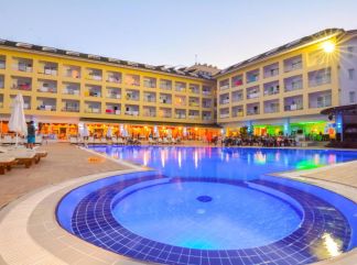 Местоположение: Намира се в курортното градче Чамюва, на 5 км. от центъра на Кемер, до летище Анталия - 65 км., до центъра на Анталия на 60 км. Открит - 2000 година, последно реновиран през 2012 година. Стаи: Хотела разполоага с общо 120 стаи, от които: 17 Еconomy room- 20 кв.м.; 41 Standart room - 20-24 кв.м; Standart room pool view- 20-24 кв.м.; Handicapped room - 20 кв.м.Всяка стая е оборудвана с: телевизор, климатик, телефон, мини бар (незареден), сейф (доп.заплащане), баня с душ кабина, сешоар, балкон. Почистване на стаята- всеки ден. Смяна на спално бельо и кърпи- 3 пъти седмчно. В хотела: 1 основен ресторант, 5 бара, открит басейн, Аква парк с 4 пързалки, фитнес център, конферентна зала, магазин, интернет на цялата територия на хотела (безплатно) За децата: детски басейн, детски клуб, детски столчета в ресторанта, детско легло в стаята ( при запитване) Безплатни услуги: сауна, турска баня и джакузи , тенис на маса, дартс и плажен волейбол, анимация Платени услуги: Пералня, опаковане на багаж, масаж, лекар, наем на кола, моторизирани водни спортове и парашутизъм. Хранене: Аll Inclusive- Закуска, обяд и вечеря на шведска маса, допълнителни хранения, алкохолни и безалкохолни напитки местно производство без лимит (съгласно концепцията на хотела) Плаж: Собствен - чакълест плаж.Чадъри, шезлонги на плажа и при басейна - безплатно. Кърпи срещу депозит. Хотелът има право да прави промени в концепцията, без да уведомява предварително туроператора за наложените промени. |