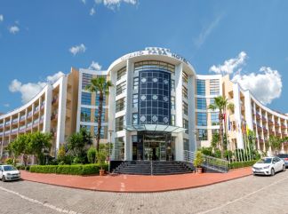 Местоположение: Хотел Grand Pasa е построен на 350 метра от морето, на 90 км от летище Даламан и на 3,5 км от градския център. Стаи: Стаите с които разполага хотел Grand Pasa са общо 280, като 271 стандартни стаи със 566 легла, 4 апартамента, 2 кралски апартамента и 3 стаи за инвалиди. Всички стаи са с балкон, който осигурява гледка към градината и басейна на хотела. Хотел Grand Pasa разполага с 274 стаи за от 2ма до 3ма души, 3ма възрастни с 1 дете или 2ма възрастни с 2 деца. Във всяка стая има телефон с директна връзка, балкон, минибар, сейф, интернет, сателит включен към плазмен телевизор, климатик, баня с кабинка, тоалетна, сешоар и телефон в баня. Хранене: Хотел Grand Pasa предоставя на гостите си основен и a-la-carte ресторант (интернационална кухня – турска, френска и вегетарианска), кафетерия, лобибар, снекбар и воден бар. Хотела също така разполага и с бизнес център в градината, фризьор, пералня (+ гладене), химическо чистене, доктор, детегледачка, мини клуб (04-11 години), магазини за подаръци и бижута, както и 24 часов room service. Плаж: Хотелът има собствен пясъчен плаж. Чадъри, шезлонги, матраци – безплатно Развлечения: Grand Pasa предлага и външен басейн с водна пързалка, детски басейн, вътрешен затоплен басейн, турска баня, сауна, масаж, джакузи, салон за красота, парна баня, СПА, фитнес център, тенис на маса, билярд, дискотека, детска площадка, училище за гмуркане. На разположение има басейн и изглед към градината. |