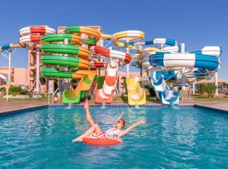 Местоположение: Намира се на 7 км. от летище Хургада, на 15 км. от центъра на Хургада, на втора линия. Хотелът е открит през 2000 година, последна частична реновация е направена през 2008 година. Стаи: Хотелът разполага с общо 296 стаи, от които 251 Standard room Pool view/ Garden view room ( гледка градина или басейн 32 м2) и 45 Family Pool / Gardev view room (гледка градина или басейн с две спални 46 м2 - вкл. банята и балкона/терасата). Всички стаи са оборудвани с климатик, телевизор, телефон, баня с душ, сешоар, минибар (зарежда се всеки ден с минерална вода - безплатно), сет за чай/кафе, сейф, Wi-fi, балкон. Почистване на стаите и смяна на кърпите - всеки ден, смяна на спално бельо – 3 пъти в седмицата. В хотела: Основен ресторант, 2 а–ла-карт ресоранта, 3 бара, 4 открити басейна и (1 отопляем през зимния сезон), Олимпийски басейн (срещу заплащане), аквапарк с 9 водни пързалки за възрастни и деца, 2 тенис корта (с твърдо покритие), СПА център (Aqua Vista Resort & Spa) магазини, конферентни зали, Wi-Fi. За децата: детски басейн, детска площадка, мини клуб (4-12г.), стая за игри, уроци по танци, вечерна анимация, музикални игри, бебешка кошара (безплатно – срещу запитване). Безплатни услуги: фитнес (в Aqua Vista), тенис на маса, дартс, боча, аеробика, водна гимнастика, волейбол, баскетбол, мини голф, футбол, мини-голф, тенис на корт, тематични вечери, анимация, Wi-fi. Клиентите на Albatros Aqua park могат да изпозлват басейните и съоръженията към тях на съседните хотели: Aqua Blue и Aqua Vista. Платени услуги: сауна, турска баня, парна баня, масаж, пилинг, джакузи, зона за релакс, фризьорски и козметичен салон, уроци по гмуркане, осветление и оборудване за тенис корт, център за игри, билярд, химическо чистене, лекар, детегледачка, водни спортове, рент-а кар. Хранене: All Inclusive - закуска, обяд и вечеря на шведска маса, междинни хранения, местни алкохолни и безалкохолни напитки - без лимит. Плаж: Хотелът е на втора линия и разполага със собствен плаж. Безплатен шатъл до плажа. Чадъри, шезлонги и матраци на плажа и при басейна - безплатно. |
