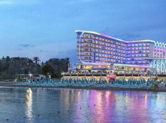 Местоположение: Хотелът се намира в района на Алания, на 101км от летището в Анталия, на 111км от центъра на Анталия, на 35км от центъра на Алания. Хотелът отваря врати в началото на месец май 2019г. върху площ от 10 000 км2 Стаи: Хотелът разполага с общо 382 стаи: Standard room (35m2), Love standard room (35m2), Swarowski suite (75m2). Всички стаи са с едно помещение и една баня, разполагат с балкон или тераса, безплатен мини бар, сет за кафе и чай, ТВ, телефон, сейф, климатик, сешоар. В хотела: А‘ ла карт ресторант с интернационална кухня (срещу допълнително заплащане); басейн с две пързалки, СПА зона; външен и вътрешен басейн за възрастни и за деца (вътрешните се подгряват), джакузи; целодневна анимация, вечерно шоу, жива музика, кино, за децата: закрит мини клуб (4-12г.), детски кът за хранене по време на вечеря, мини аквапарк, сладолед (между 14:00 и 16:00), детски басейни (закрит и открит), мини-диско, кошара. Хранене: ULTRA ALL INCLUSIVE – закуска, обяд, вечеря и междинни хранения на шведска маса. Хотелът има право да прави промени в концепцията, без да уведомява предварително туроператора за наложените промени. Плаж: разположен на първа линия, собствен пясъчен плаж с дължина 100м. Чадъри и шезлонги безплатно на плажа и на басейна Безплатни услуги: целодневна анимация, вечерно шоу, жива музика, кино, плажен волейбол, тенис на маса, дартс, хамам, сейф Развлечения: срещу доплащане - гладене, игрална зала, билярд, водни спортове, гладене, фрешове, лекар, масаж, джакузи |
